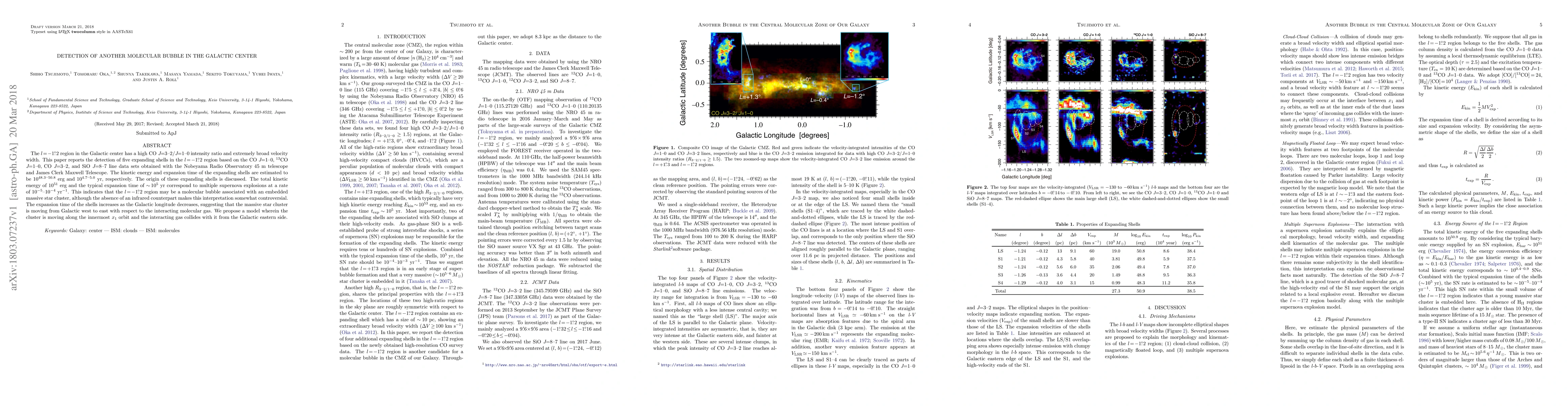 This research detects five expanding shells in the Galactic center's $l=-1.2^{circ}$ region using CO and SiO line data, suggesting a molecular bubble associated with a massive star cluster moving from west to east. The absence of an infrared counterpart complicates this interpretation.