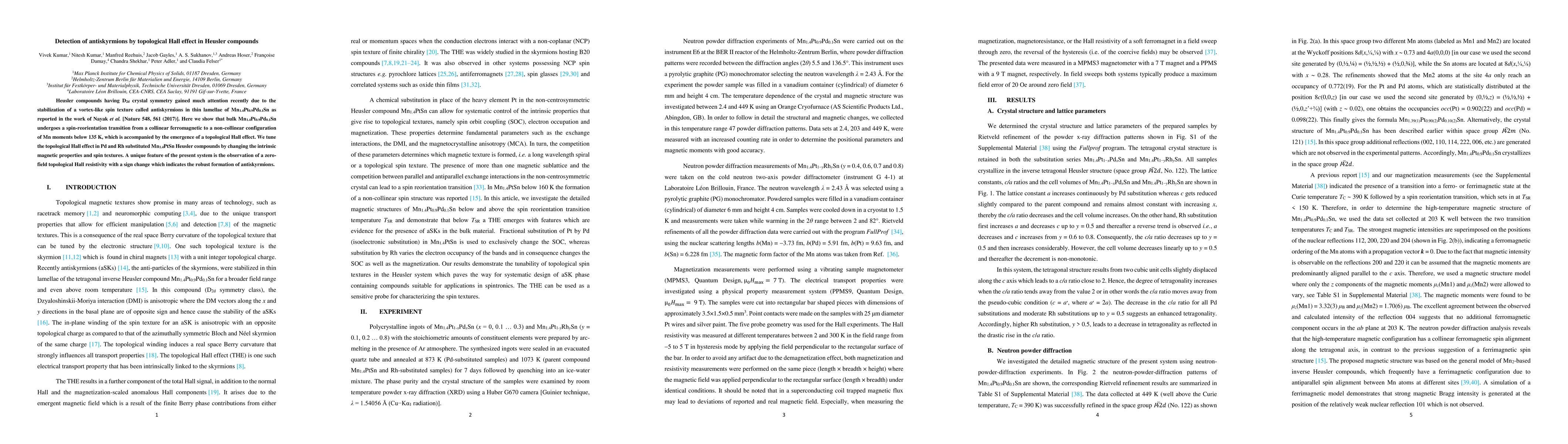 Researchers discovered a spin-reorientation transition in Heusler compounds that leads to the emergence of antiskyrmions, which are vortex-like spin textures, and a topological Hall effect with zero-field resistivity.