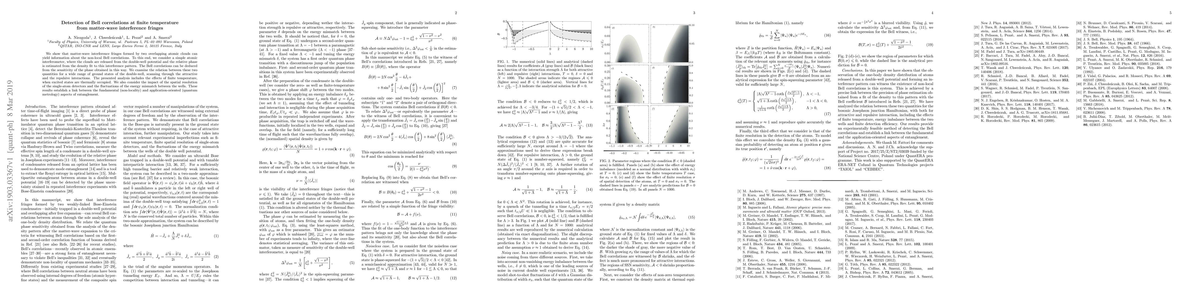 We show that matter-wave interference fringes formed by two overlapping atomic clouds can yield information about the non-local Bell correlations. To this end, we consider a simple atomic interferometer, where the clouds are released from the double-well potential and the relative phase is estimated from the density fit to this interference pattern. The Bell correlations can be deduced from the sensitivity of the phase obtained in this way. We examine the relation between these two quantities for a wide range of ground states of the double-well, scanning through the attractive and the repulsive interactions. The presented analysis includes the effects of finite temperature, when excited states are thermally occupied. We also consider the impact of the spatial resolution of the single-atom detectors and the fluctuations of the energy mismatch between the wells. These results establish a link between the fundamental (non-locality) and application-oriented (quantum metrology) aspects of entanglement.