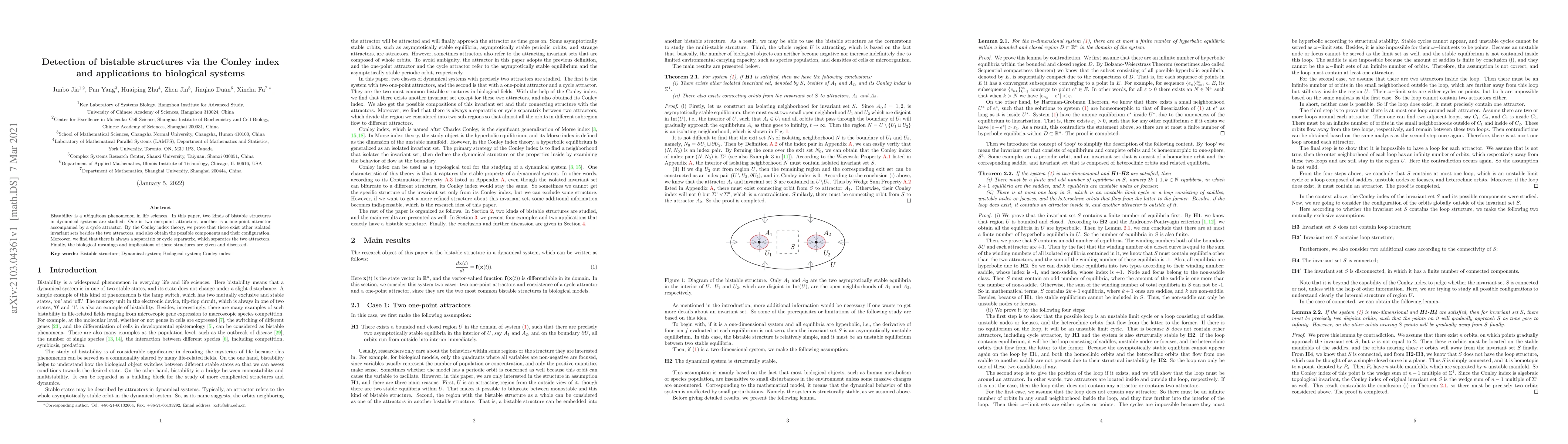 This paper investigates bistable structures in dynamical systems using the Conley index theory, identifying additional isolated invariant sets beyond two attractors, and discusses their biological implications in life sciences. The study reveals separatrices or cycle separatrices that separate the attractors, with applications to biological systems.