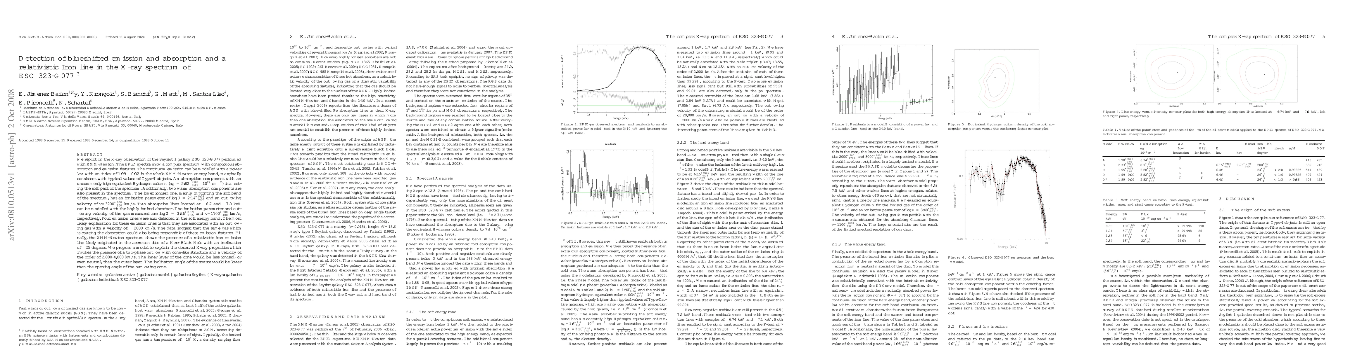 We report on the X-ray observation of the Seyfert 1 ESO323-G077 performed with XMM-Newton. The spectra show a complex spectrum with conspicuous absorption and emission features. The continuum emission can be modelled with a power law with an index of 1.99+/-0.02 in the whole XMM-Newton energy band, marginally consistent with typical values of Type-I objects. An absorption component with an uncommonly high equivalent Hydrogen column, n_H=5.82(+0.12/-0.11)x10^22 cm-2, is affecting the soft part of the spectrum. Additionally, two warm absorption components are also present. The lower ionised one has an ionisation parameter of Log(U)=2.14(+0.06/-0.07) and an outflowing velocity of v=3200(+600/-200) km/s. Two absorption lines located at ~6.7 and ~7.0 keV can be modelled with the highly ionised absorber. The ionisation parameter and outflowing velocity of the gas measured are Log(U)=3.26(+0.19/-0.15) and v=1700(+600/-400) km/s, respectively. Four emission lines were also detected in the soft energy band. The most likely explanation for these emission lines is that they are associated with an outflowing gas with a velocity of ~2000 km/s. The data suggest that the same gas which is causing the absorption could also being responsible of these emission features. Finally, the spectrum shows the presence of a relativistic iron emission line likely originated in the accretion disc of a Kerr BH with an inclination of ~25 deg. We propose a model to explain the observed X-ray properties which invokes the presence of a two-phase outflow with cone-like structure and a velocity of the order of 2,000-4,000 km/s. The inner layer of the cone would be less ionised, or even neutral, than the outer layer. The inclination angle would be lower than the opening angle of the outflowing cone.