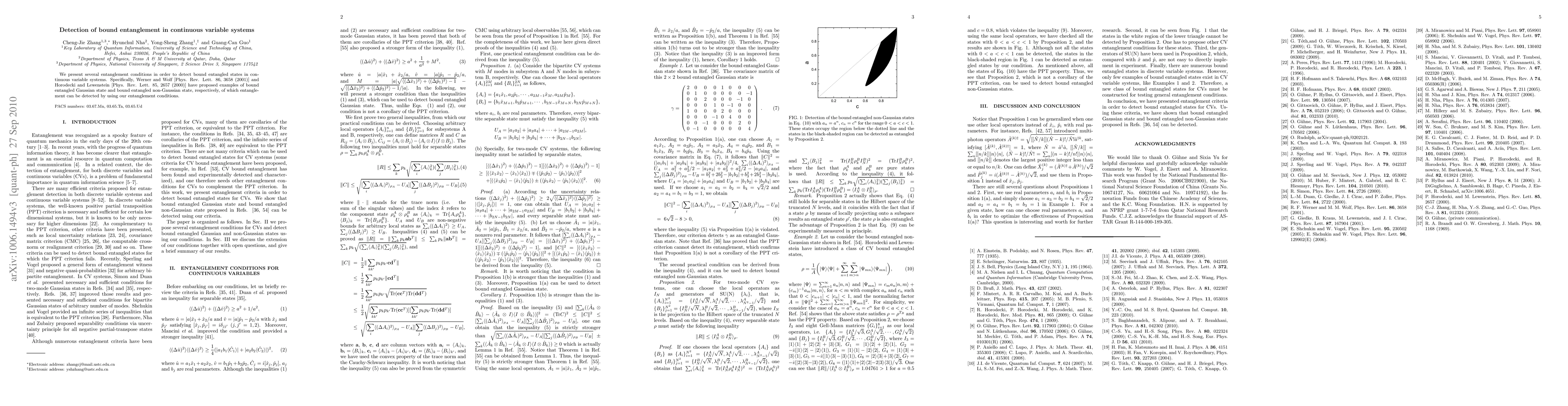 Researchers developed conditions to detect bound entanglement in continuous variable systems, building on previous examples of bound entangled states.
