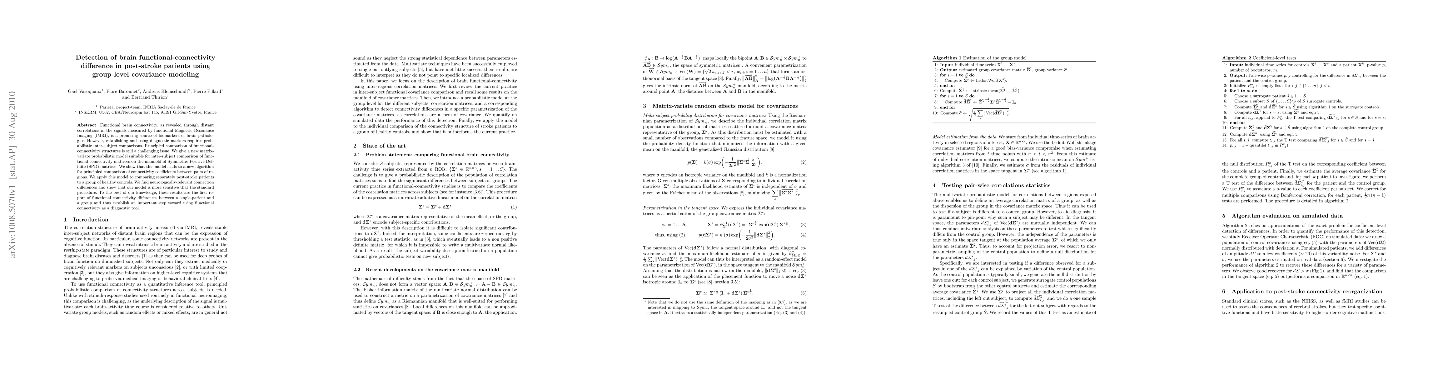 This paper introduces a new matrix-variate probabilistic model for comparing functional connectivity matrices in post-stroke patients versus healthy controls using fMRI data. The proposed model detects neurologically relevant differences in brain connectivity, demonstrating greater sensitivity compared to standard methods.