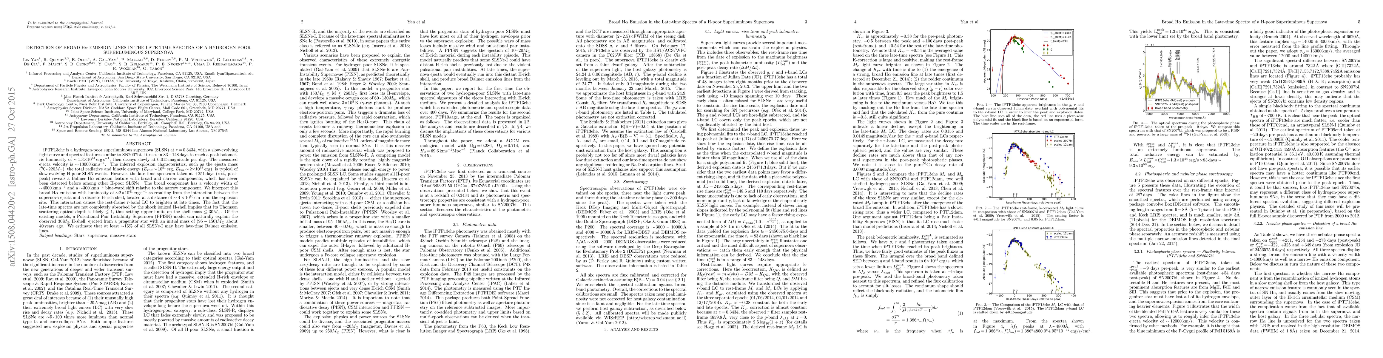 A hydrogen-poor superluminous supernova was observed with a unique broad H-alpha emission line in its late-time spectrum, suggesting interaction between the supernova ejecta and a discrete H-rich shell.