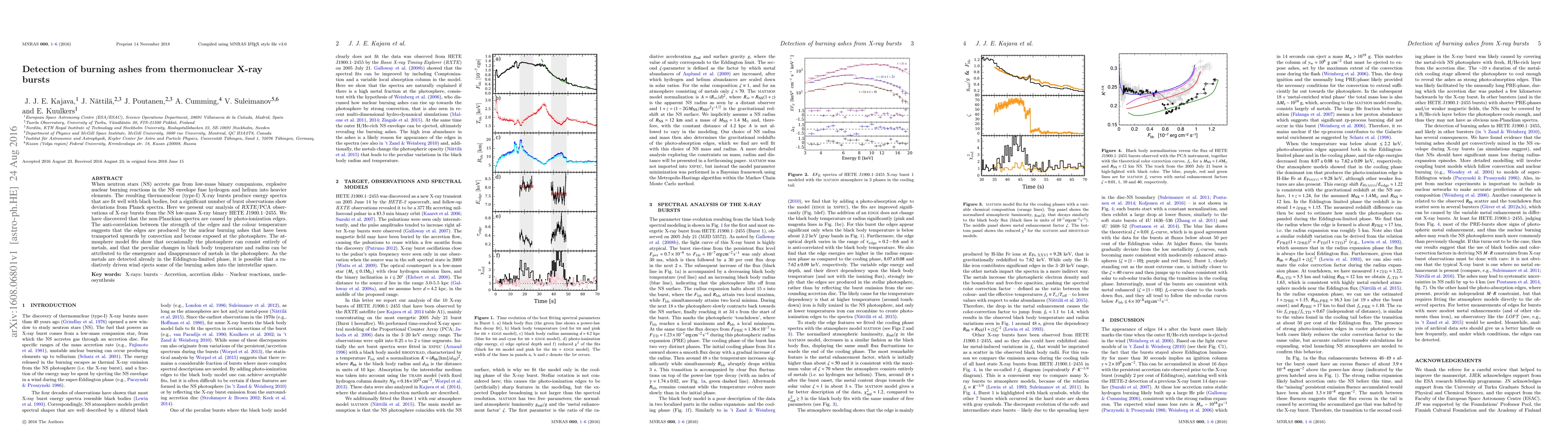 This paper analyzes X-ray bursts from neutron stars in low-mass binary systems, finding that deviations from Planck spectra in the bursts are due to photo-ionization edges caused by nuclear burning ashes. The emergence of these metals in the photosphere suggests a radiatively driven wind may eject some ashes into interstellar space.