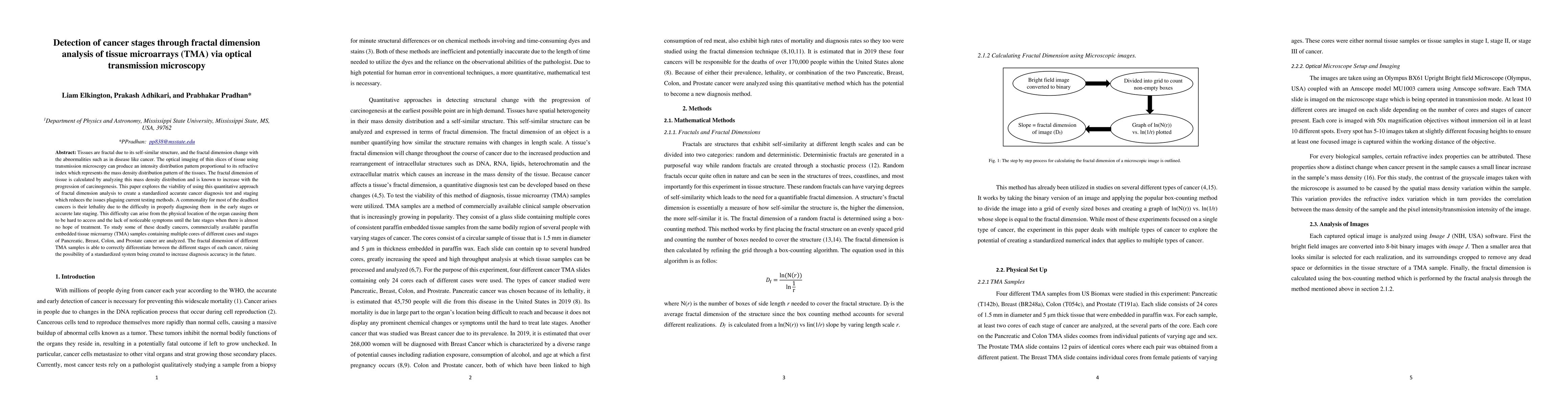 This paper investigates the use of fractal dimension analysis of tissue microarrays via optical transmission microscopy to detect and stage cancer. The study finds that fractal dimension increases with cancer progression, enabling differentiation between cancer stages and suggesting a potential for improved, standardized cancer diagnosis.