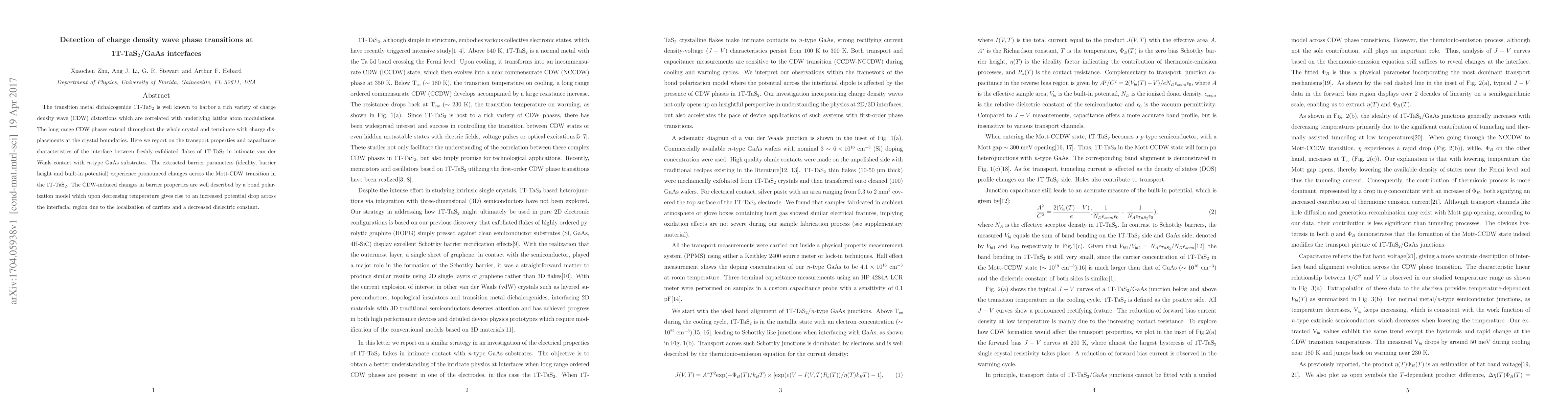 This study investigates the charge density wave (CDW) phase transitions in 1T-TaS$_2$ at its interface with n-type GaAs, observing significant changes in transport properties and capacitance characteristics. The CDW-induced modifications are explained through a bond polarization model correlating with temperature-dependent potential variations and dielectric constant changes.