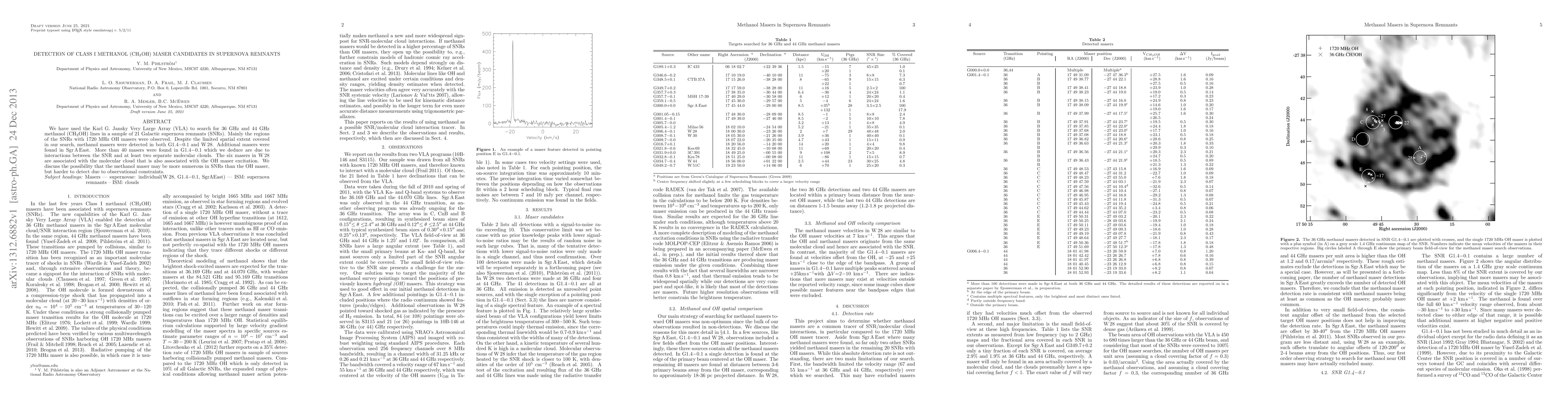 The study used the VLA to detect methanol masers at 36 GHz and 44 GHz in 21 Galactic supernova remnants (SNRs), finding numerous masers in G1.4-0.1 linked to molecular cloud interactions, and additional masers in W28 and SgrAEast. The research suggests methanol masers may be more abundant in SNRs than OH masers but harder to detect.