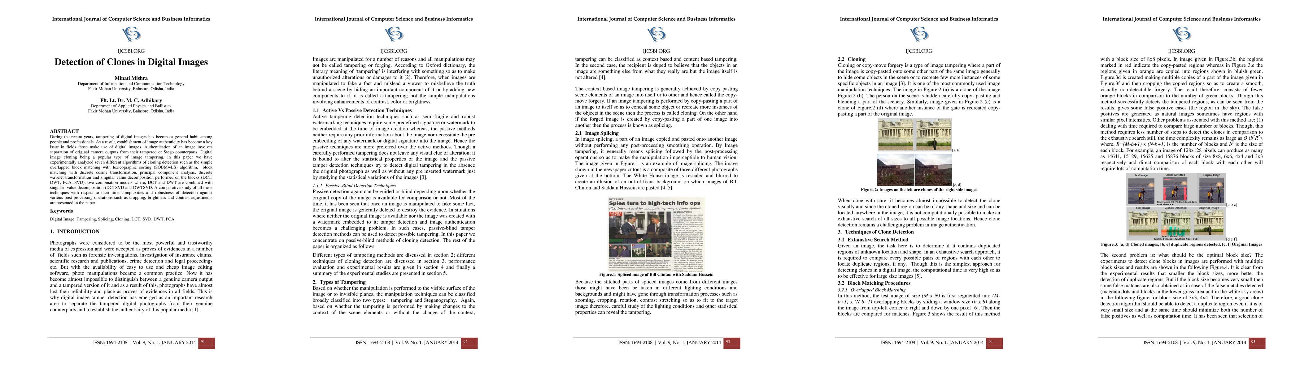 During the recent years, tampering of digital images has become a general habit among people and professionals. As a result, establishment of image authenticity has become a key issue in fields those make use of digital images. Authentication of an image involves separation of original camera outputs from their tampered or Stego counterparts. Digital image cloning being a popular type of image tampering, in this paper we have experimentally analyzed seven different algorithms of cloning detection such as the simple overlapped block matching with lexicographic sorting (SOBMwLS) algorithm, block matching with discrete cosine transformation, principal component analysis, discrete wavelet transformation and singular value decomposition performed on the blocks (DCT, DWT, PCA, SVD), two combination models where, DCT and DWT are combined with singular value decomposition (DCTSVD and DWTSVD. A comparative study of all these techniques with respect to their time complexities and robustness of detection against various post processing operations such as cropping, brightness and contrast adjustments are presented in the paper.