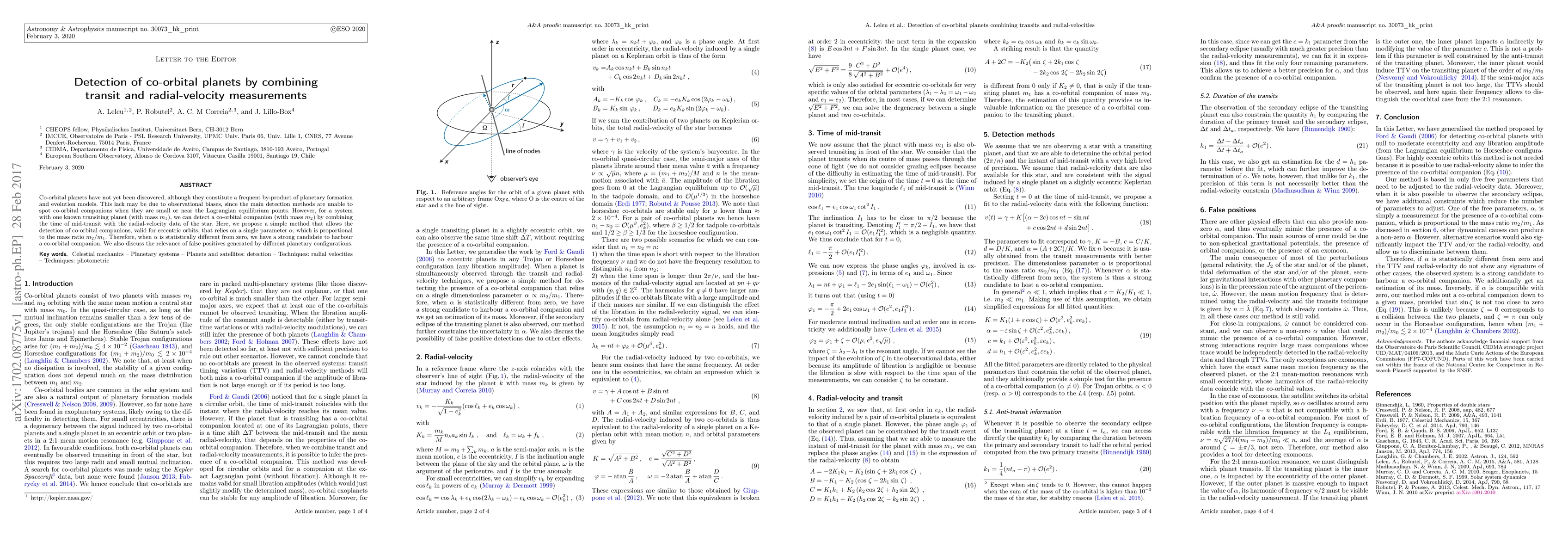 This paper proposes a method to detect co-orbital planets by combining transit and radial-velocity data, suggesting that a non-zero parameter $\alpha$ proportional to the mass ratio indicates the presence of a co-orbital companion. It addresses the limitations of current detection methods and discusses potential false positives.