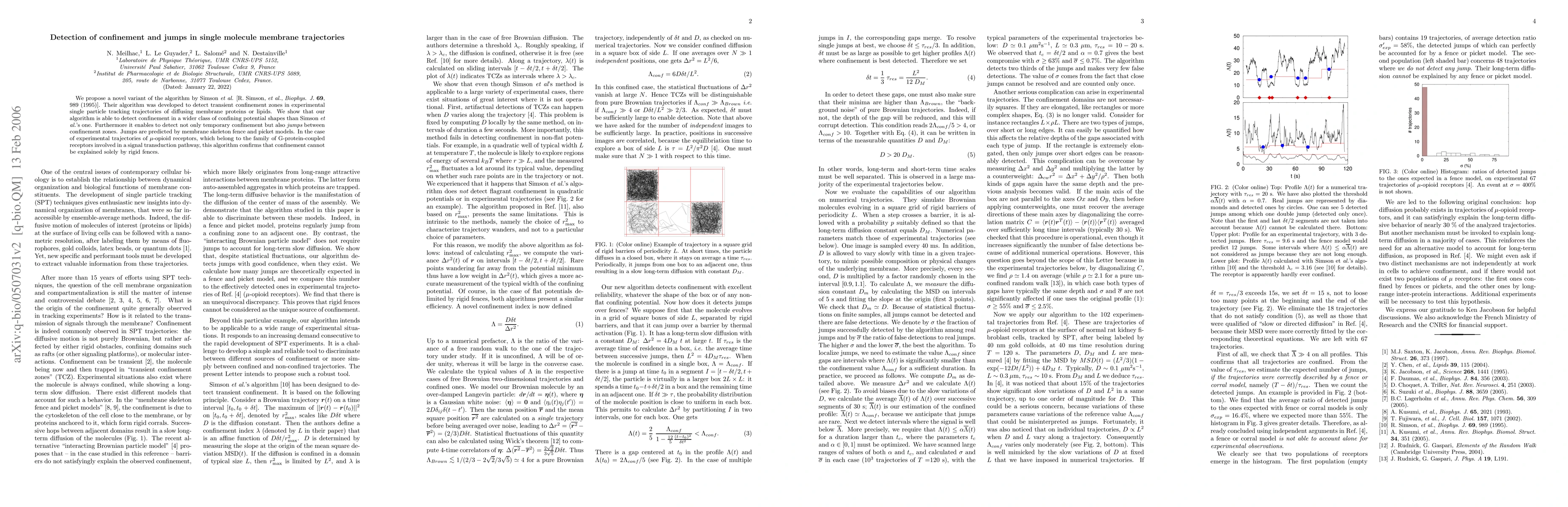 We propose a novel variant of the algorithm by Simson et al. [R. Simson, E.D. Sheets, K. Jacobson, Biophys. J. 69, 989 (1995)]. Their algorithm was developed to detect transient confinement zones in experimental single particle tracking trajectories of diffusing membrane proteins or lipids. We show that our algorithm is able to detect confinement in a wider class of confining potential shapes than Simson et al.'s one. Furthermore it enables to detect not only temporary confinement but also jumps between confinement zones. Jumps are predicted by membrane skeleton fence and picket models. In the case of experimental trajectories of $\mu$-opioid receptors, which belong to the family of G-protein-coupled receptors involved in a signal transduction pathway, this algorithm confirms that confinement cannot be explained solely by rigid fences.