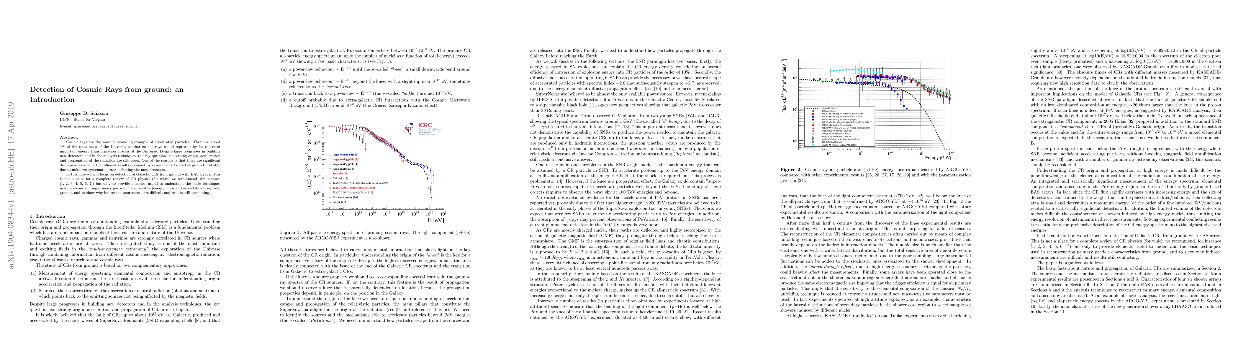 Cosmic rays are the most outstanding example of accelerated particles. They are about 1\% of the total mass of the Universe, so that cosmic rays would represent by far the most important energy transformation process of the Universe. Despite large progresses in building new detectors and in the analysis techniques, the key questions concerning origin, acceleration and propagation of the radiation are still open. One of the reasons is that there are significant discrepancies among the different results obtained by experiments located at ground probably due to unknown systematic errors affecting the measurements. In this note we will focus on detection of Galactic CRs from ground with EAS arrays. This is not a place for a complete review of CR physics (for which we recommend, for instance \cite{spurio,gaisser,grieder,longair,kampert,blasi,kachelriess}) but only to provide elements useful to understand the basic techniques used in reconstructing primary particle characteristics (energy, mass and arrival direction) from ground, and to show why indirect measurements are difficult and results still conflicting.