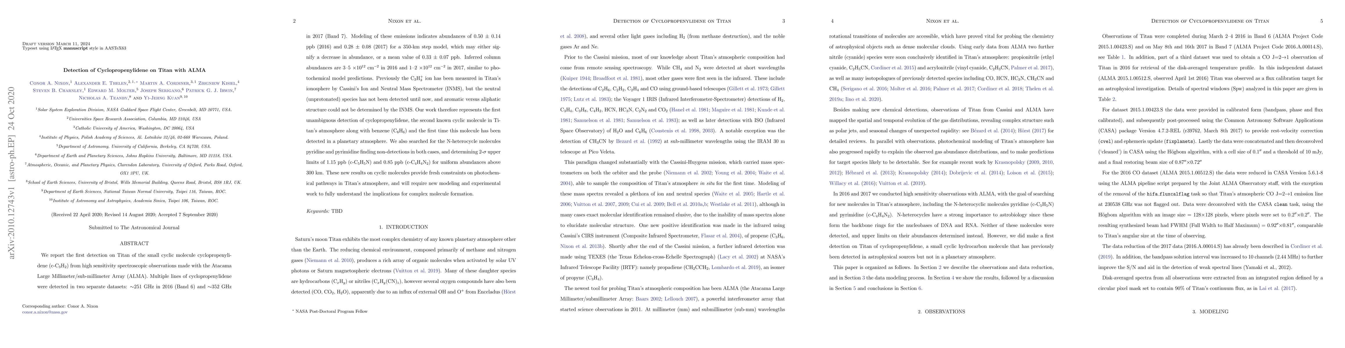 Scientists have detected cyclopropenylidene on Titan for the first time using ALMA, finding it in two separate datasets with estimated abundances of 0.33 ppb.