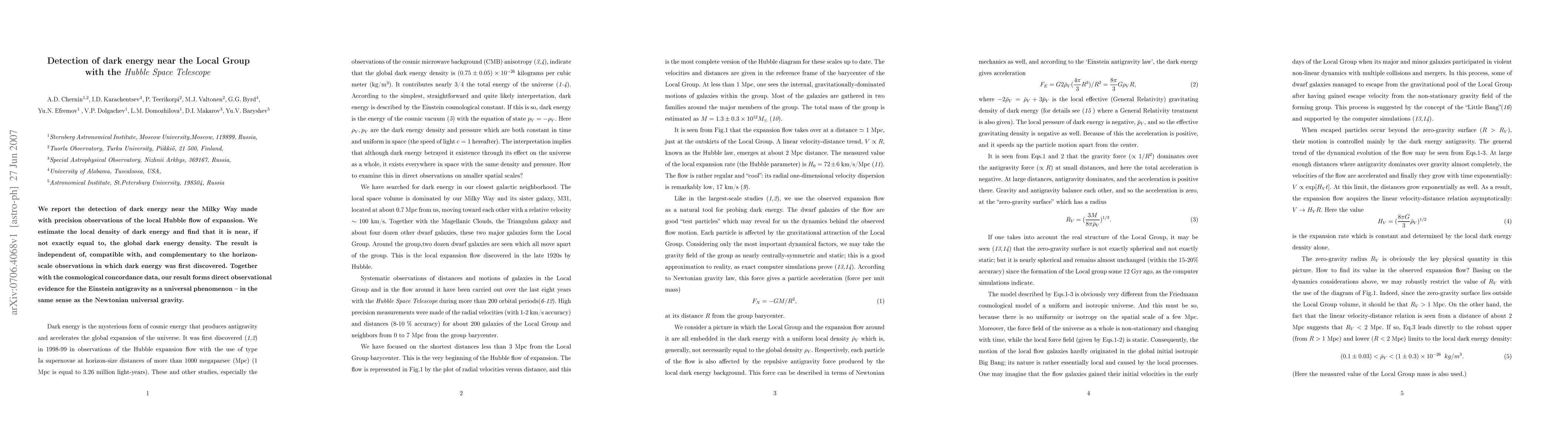 Scientists detected dark energy near the Milky Way using the Hubble Space Telescope, confirming its local density is similar to global values and providing direct observational evidence for Einstein's antigravity phenomenon.