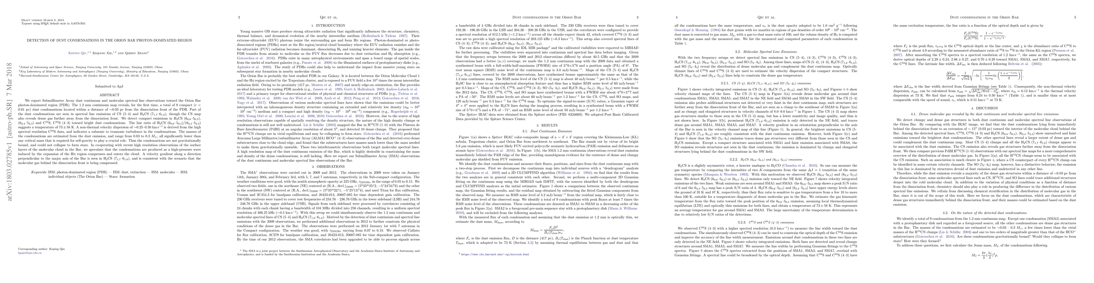 Researchers detected 9 compact dust condensations within 0.03 pc of the Orion Bar photon-dominated region, with masses between 0.03-0.3 M�; these condensations do not appear to be gravitationally bound and are likely produced by compression of molecular gas as the HII region expands.