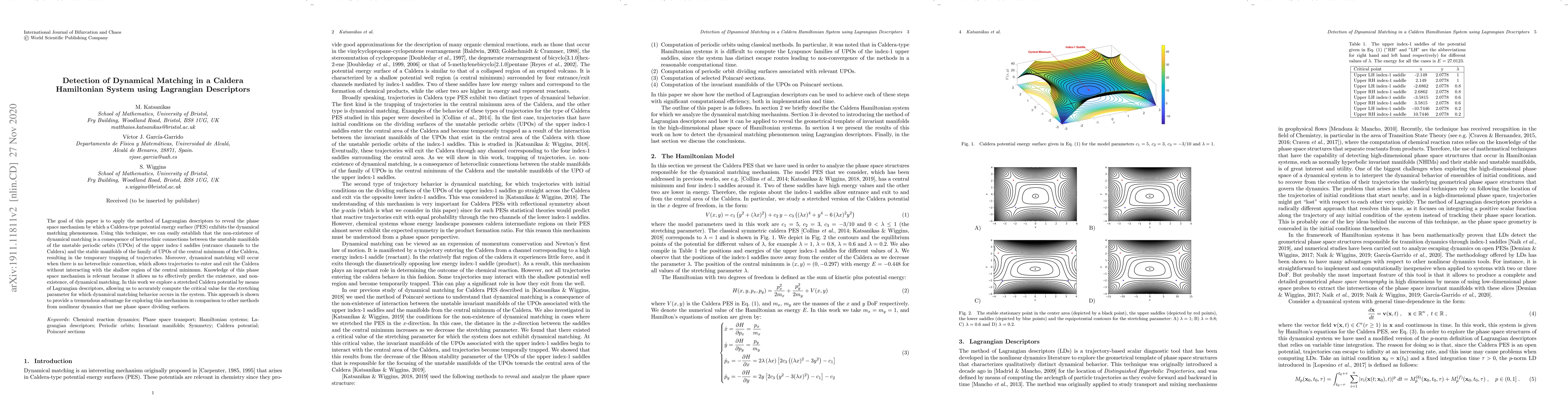 This paper applies Lagrangian descriptors to investigate the dynamical matching phenomenon in a Caldera Hamiltonian system, revealing that the absence of dynamical matching is due to heteroclinic connections between unstable periodic orbits. The study identifies the critical stretching parameter for which dynamical matching occurs, providing a superior method for understanding this mechanism compared to traditional nonlinear dynamics techniques.