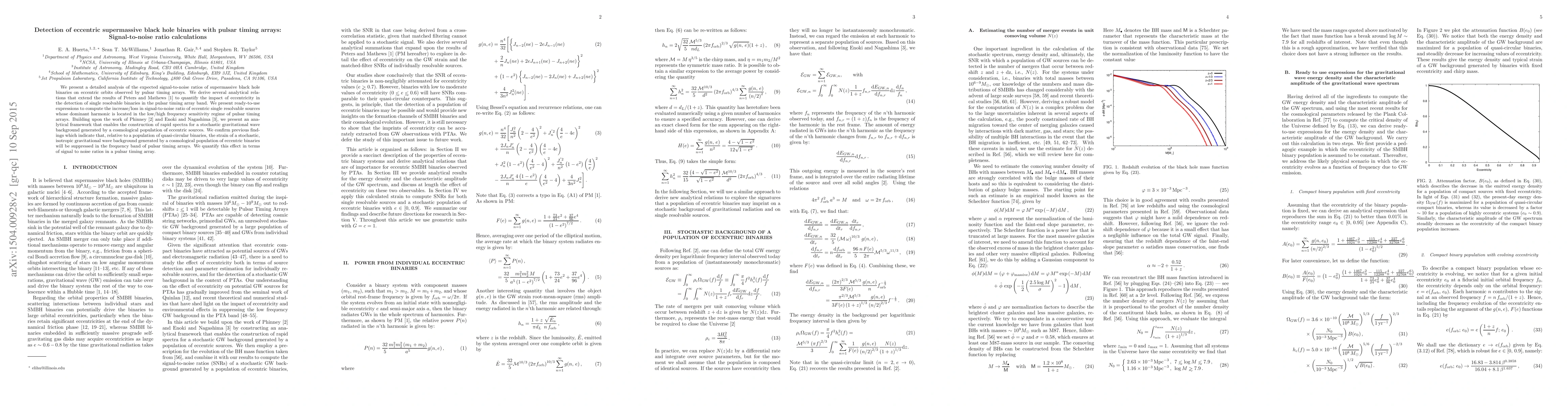 This paper provides analytical relations to quantify the signal-to-noise ratio for detecting eccentric supermassive black hole binaries using pulsar timing arrays, extending previous work to include the effects of eccentricity. It confirms that eccentric binaries generate a weaker stochastic gravitational-wave background in the pulsar timing array frequency band compared to quasicircular binaries.