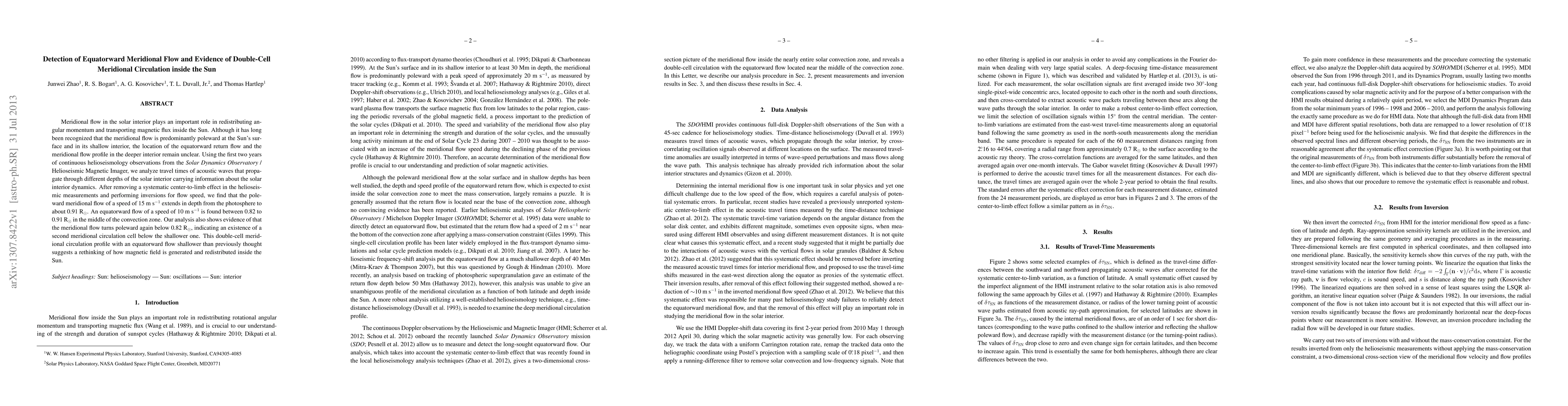This study reveals a double-cell meridional circulation inside the Sun, with a poleward flow extending to 0.91 R_sun and an equatorward flow between 0.82 to 0.91 R_sun, suggesting a deeper equatorward return flow than previously recognized. The findings indicate a second meridional circulation cell below the shallower one, which may impact models of magnetic flux transport and angular momentum redistribution.