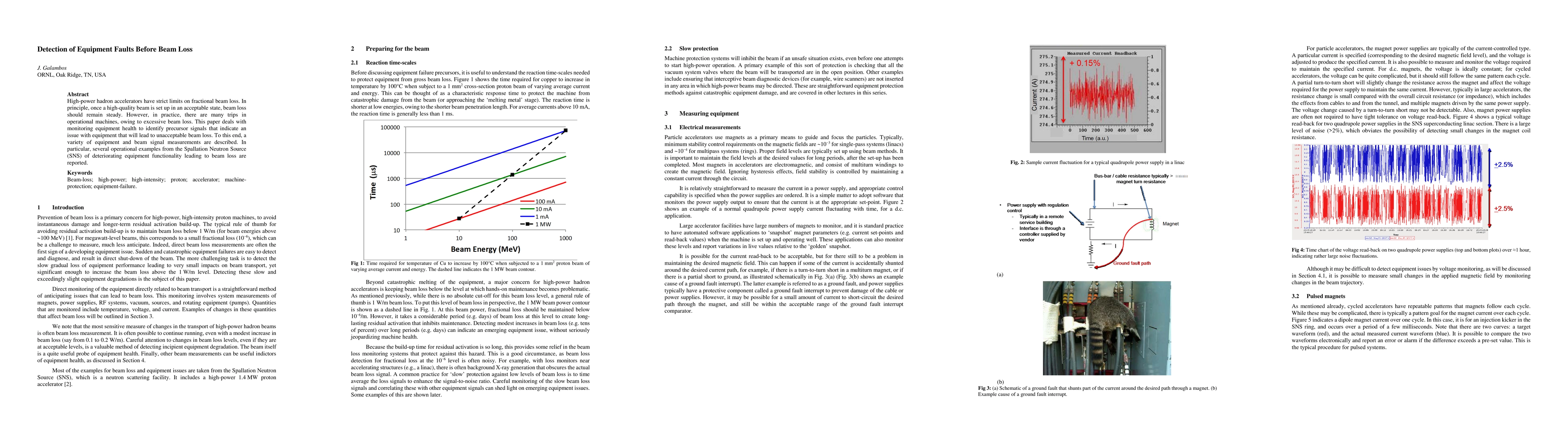 High-power hadron accelerators have strict limits on fractional beam loss. In principle, once a high-quality beam is set up in an acceptable state, beam loss should remain steady. However, in practice, there are many trips in operational machines, owing to excessive beam loss. This paper deals with monitoring equipment health to identify precursor signals that indicate an issue with equipment that will lead to unacceptable beam loss. To this end, a variety of equipment and beam signal measurements are described. In particular, several operational examples from the Spallation Neutron Source (SNS) of deteriorating equipment functionality leading to beam loss are reported.