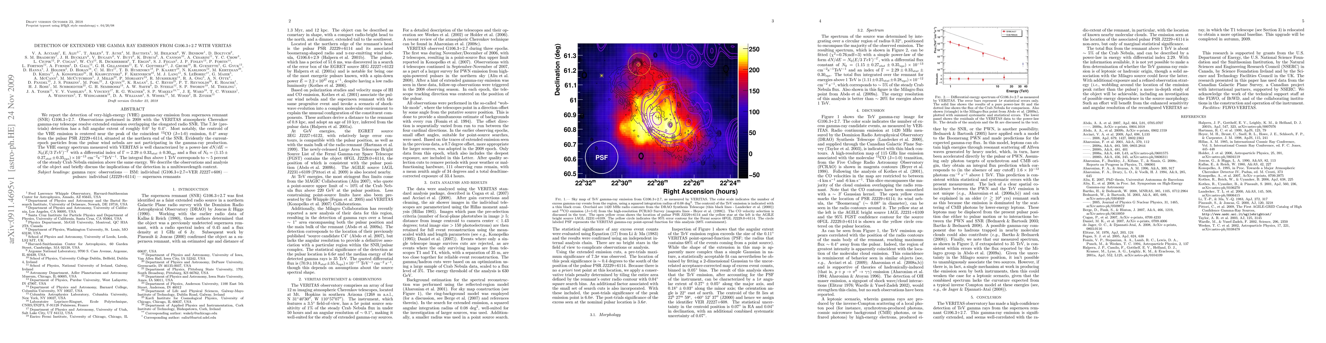 The VERITAS telescope detected extended very-high-energy gamma-ray emission from the supernova remnant G106.3+2.7, characterized by a power law spectrum, with the emission center near the 12CO emission peak but not the pulsar PSR J2229+6114. The detection suggests the emission does not originate from the pulsar wind nebula.