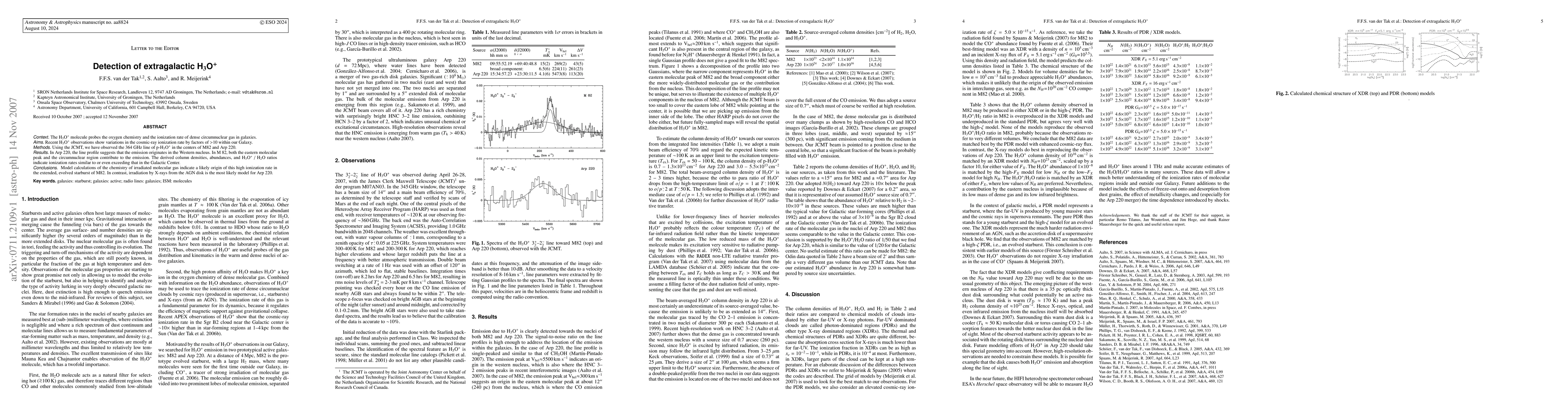 The H3O+ molecule probes the oxygen chemistry and the ionization rate of dense circumnuclear gas in galaxies. In particular, recent H3O+ observations show variations in the cosmic-ray ionization rate by factors of $>$10 within our Galaxy. Using the JCMT, we have observed the 364 GHz line of p-H3O+ in the centers of M82 and Arp 220. In Arp 220, the line profile suggests that the emission originates in the Western nucleus. In M82, both the eastern molecular peak and the circumnuclear region contribute to the emission. The derived column densities, abundances, and H3O+ / H2O ratios indicate ionization rates similar to or even exceeding that in the Galactic Center. Model calculations of the chemistry of irradiated molecular gas indicate a likely origin of this high ionization rate in the extended, evolved starburst of M82. In contrast, irradiation by X-rays from the AGN disk is the most likely model for Arp 220.