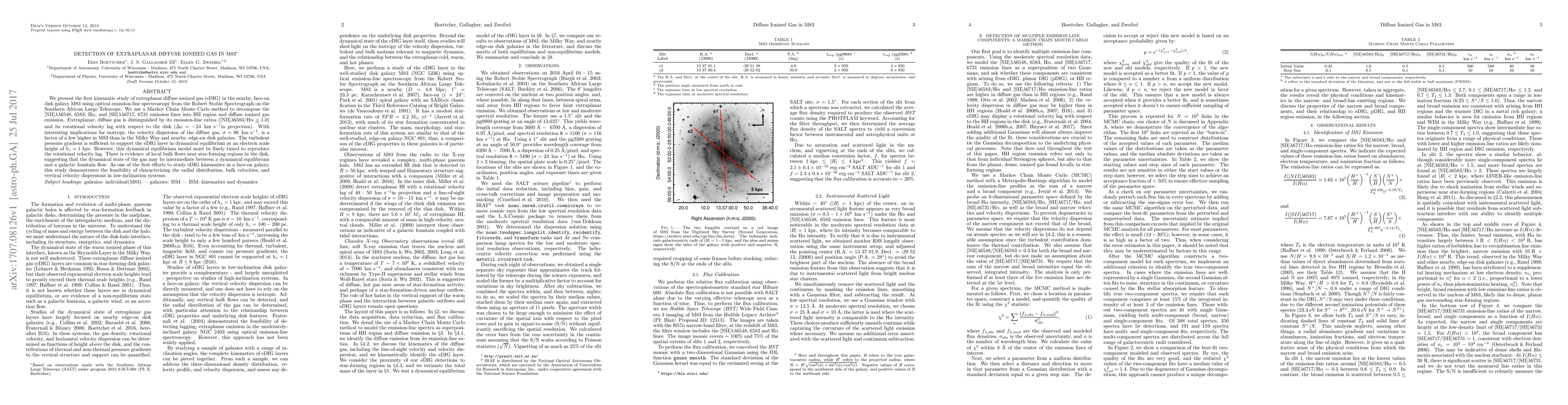 This study investigates the kinematics of extraplanar diffuse ionized gas (eDIG) in the galaxy M83 using optical spectroscopy, revealing higher velocity dispersion and turbulent pressure gradients compared to the Milky Way. The findings suggest a complex dynamical state between equilibrium and galactic fountain flow.
