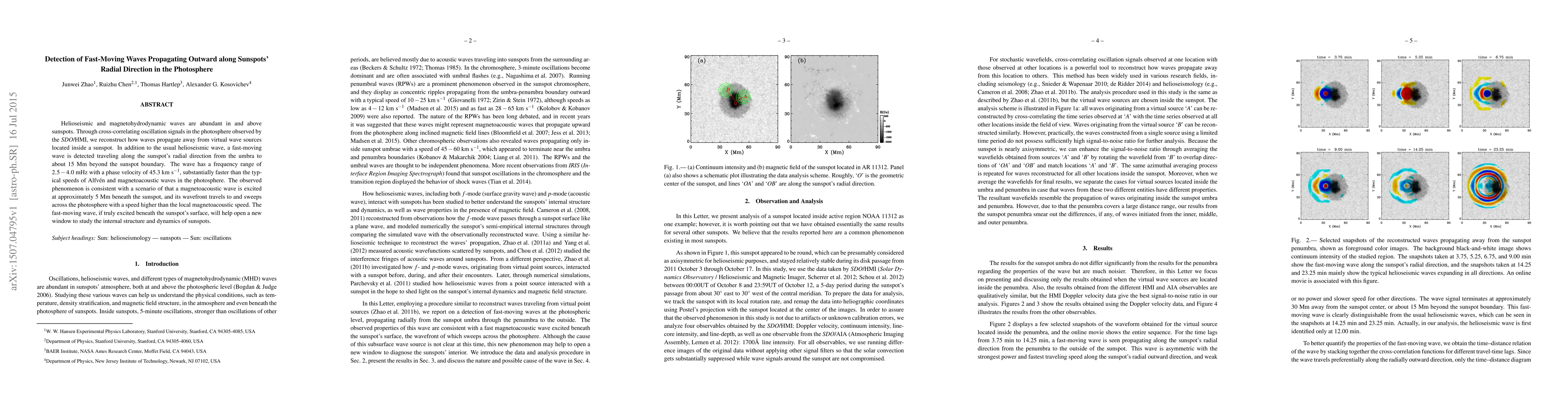 Helioseismic and magnetohydrodynamic waves are abundant in and above sunspots. Through cross-correlating oscillation signals in the photosphere observed by the SDO/HMI, we reconstruct how waves propagate away from virtual wave sources located inside a sunspot. In addition to the usual helioseismic wave, a fast-moving wave is detected traveling along the sunspot's radial direction from the umbra to about 15 Mm beyond the sunspot boundary. The wave has a frequency range of 2.5 - 4.0 mHz with a phase velocity of 45.3 km/s, substantially faster than the typical speeds of Alfven and magnetoacoustic waves in the photosphere. The observed phenomenon is consistent with a scenario of that a magnetoacoustic wave is excited at approximately 5 Mm beneath the sunspot, and its wavefront travels to and sweeps across the photosphere with a speed higher than the local magnetoacoustic speed. The fast-moving wave, if truly excited beneath the sunspot's surface, will help open a new window to study the internal structure and dynamics of sunspots.