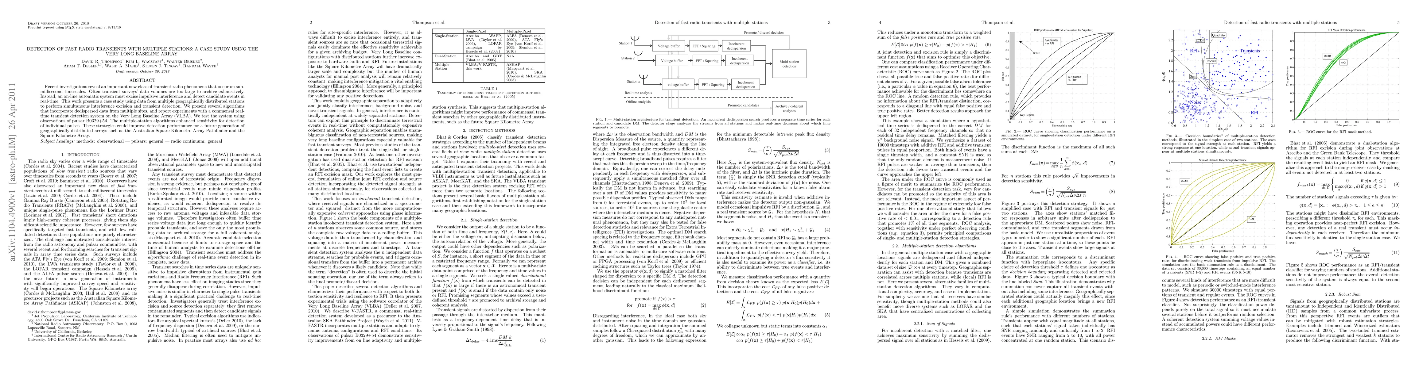 This paper investigates the detection of fast radio transients using algorithms that combine data from multiple geographically distributed stations, specifically the Very Long Baseline Array (VLBA). The study demonstrates enhanced sensitivity for transient detection and suggests these methods could improve future distributed array systems like the SKA.