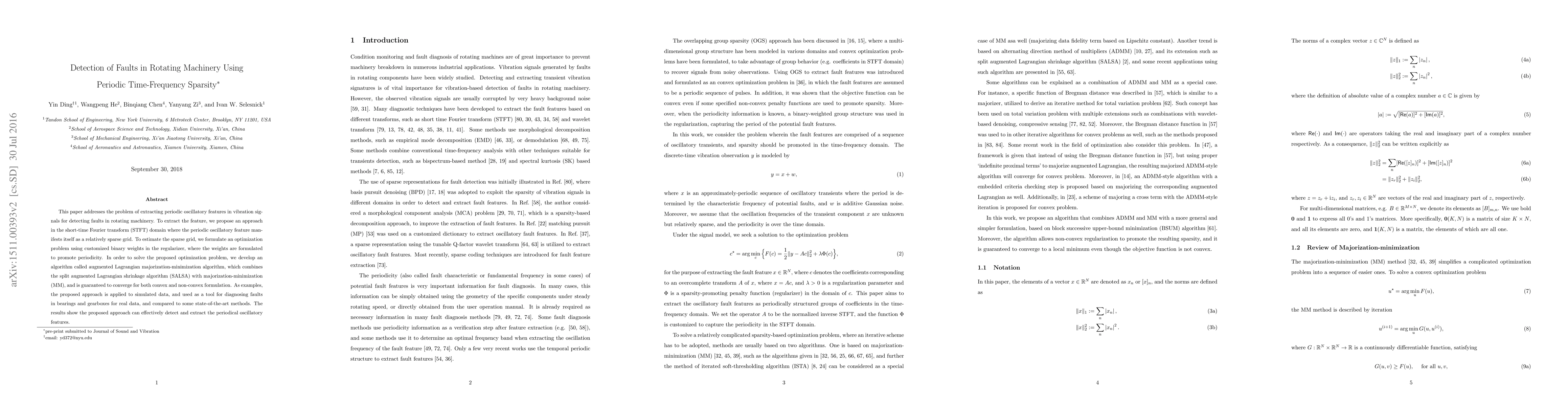This paper proposes an optimization approach using periodic time-frequency sparsity in the STFT domain to detect faults in rotating machinery by identifying sparse grids in vibration signals. The method employs an augmented Lagrangian majorization-minimization algorithm and is shown to outperform state-of-the-art techniques in fault detection for bearings and gearboxes.