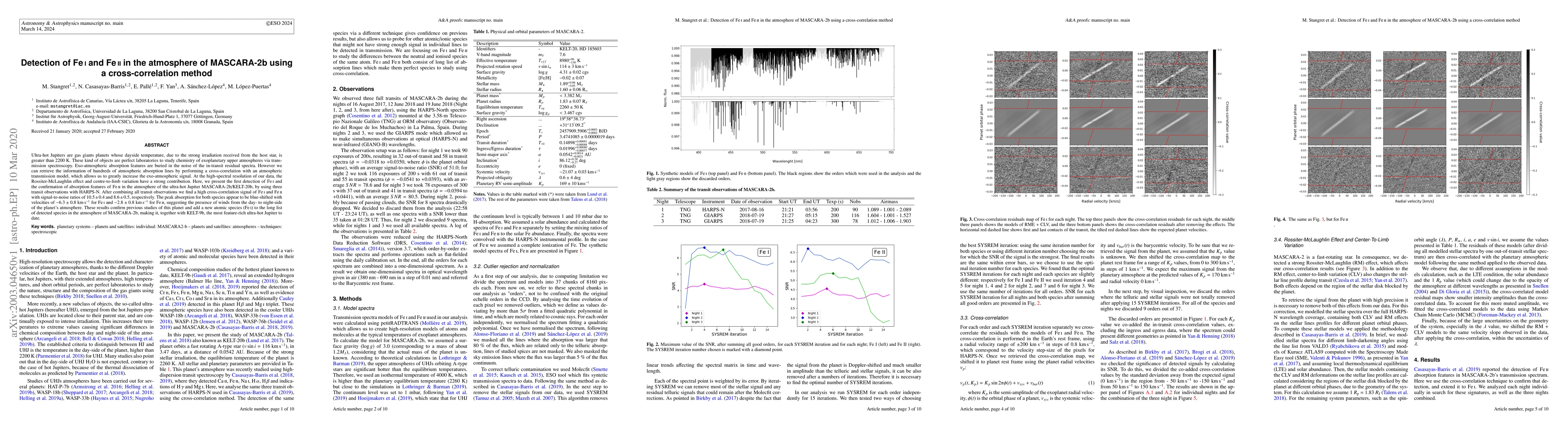 This study reports the first detection of Fe I and the confirmation of Fe II absorption features in the atmosphere of the ultra-hot Jupiter MASCARA-2b using cross-correlation methods. The findings suggest the presence of winds in the planet's atmosphere, as indicated by the blue-shifted peak absorption of both species.