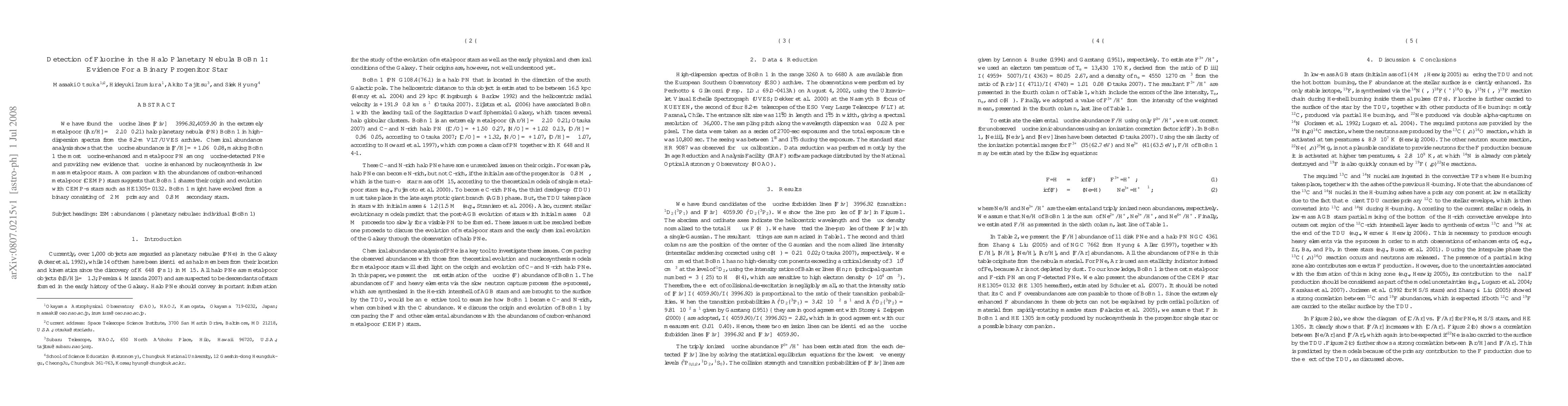 This study detected fluorine lines in the metal-poor planetary nebula BoBn 1, revealing it as the most fluorine-enhanced among similar objects. The findings suggest BoBn 1 likely evolved from a binary system with a primary star of ~2 Msun and a secondary of ~0.8 Msun, supporting the theory of fluorine enhancement through nucleosynthesis in low-mass stars.