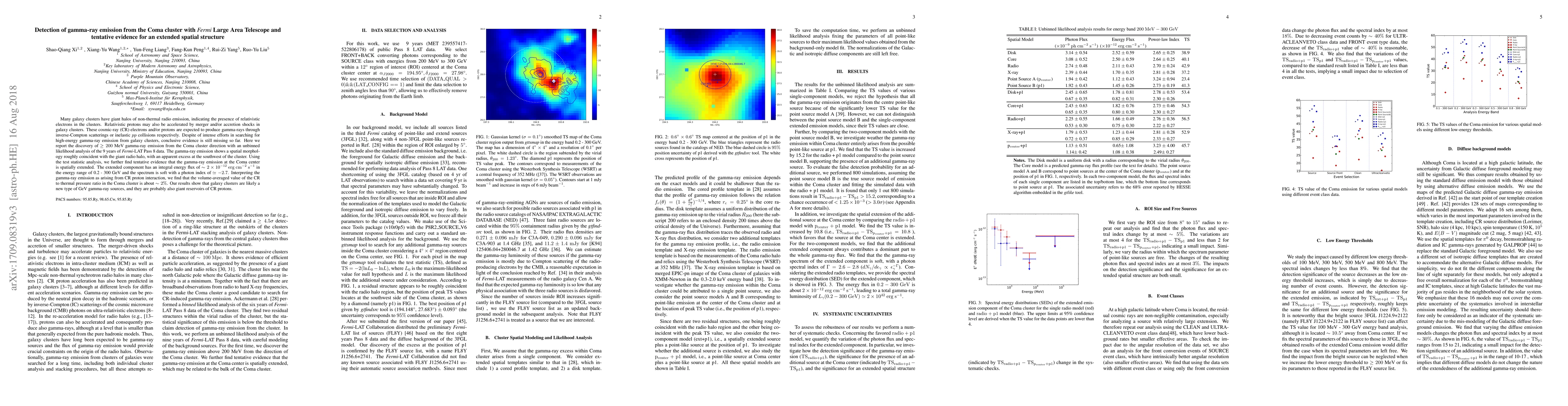 The Fermi Large Area Telescope detected gamma-ray emission from the Coma cluster, indicating the presence of relativistic electrons and protons. This emission shows a spatial morphology aligned with the cluster's radio halo, with tentative evidence of an extended component at the cluster's center.