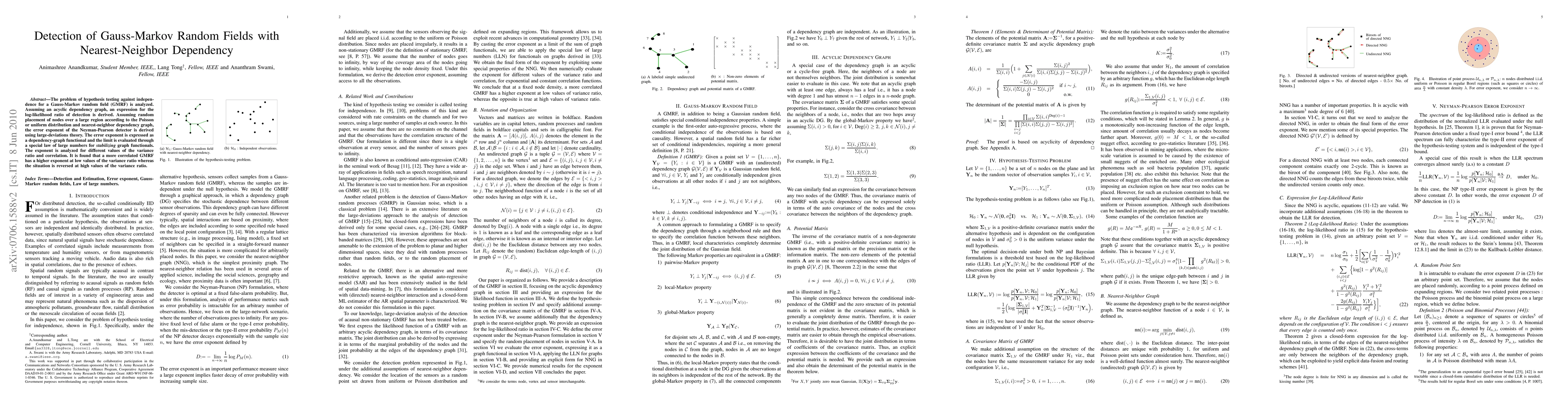 This paper develops a hypothesis test for detecting Gauss-Markov random fields (GMRFs) with nearest-neighbor dependencies, deriving an expression for the log-likelihood ratio and the error exponent for the Neyman-Pearson detector. It finds that correlation impacts the error exponent differently depending on the variance ratio.