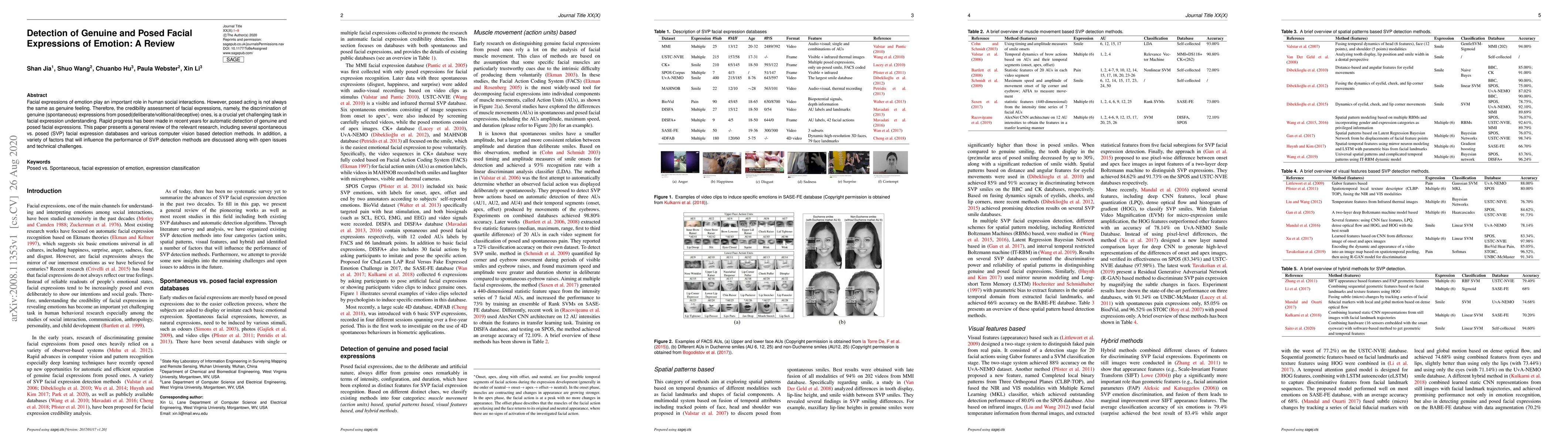 This paper reviews advancements in detecting genuine versus posed facial expressions, highlighting various databases and computer vision methods used. It also discusses factors affecting detection performance and identifies open challenges in the field.