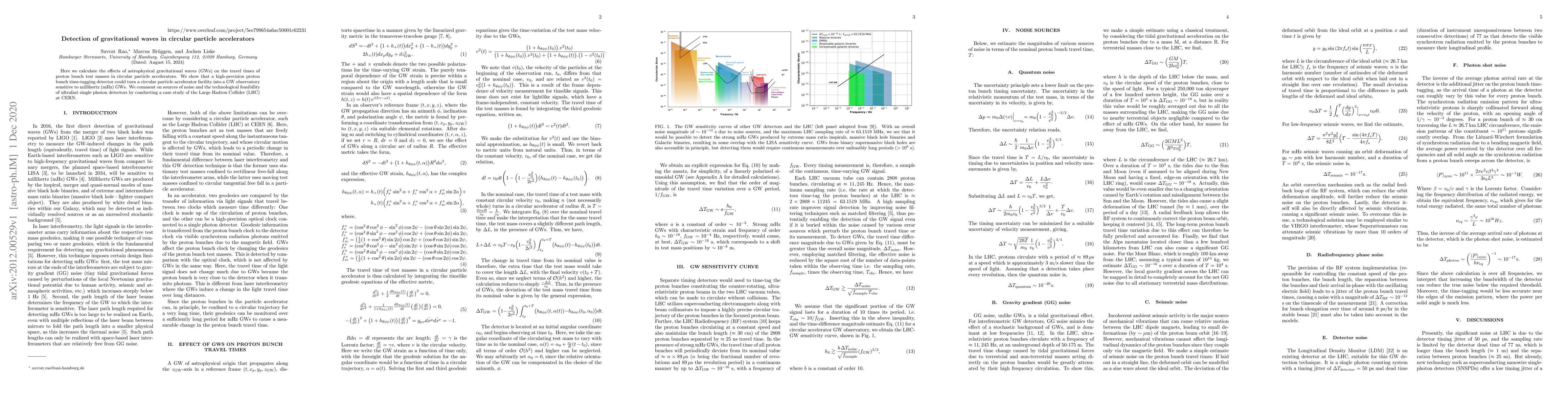 A circular particle accelerator can detect gravitational waves at millihertz frequencies with a high-precision proton bunch time-tagging detector. This technology could turn existing facilities like the Large Hadron Collider into GW observatories.