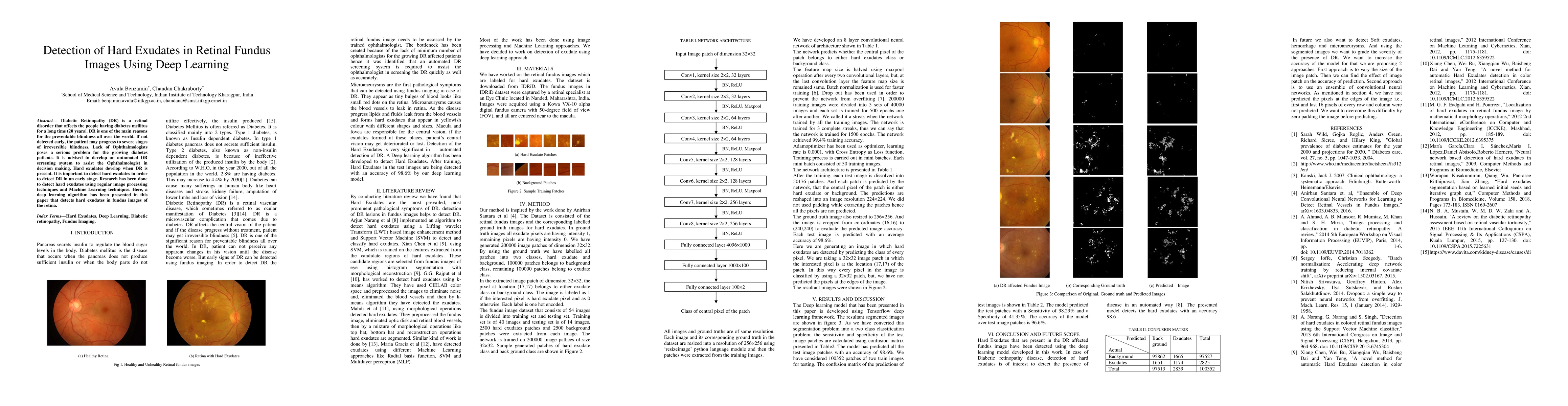This paper proposes a deep learning algorithm to detect hard exudates in retinal fundus images, aiming to assist in early detection of Diabetic Retinopathy, a leading cause of preventable blindness. The method seeks to address the shortage of ophthalmologists by providing an automated screening system.