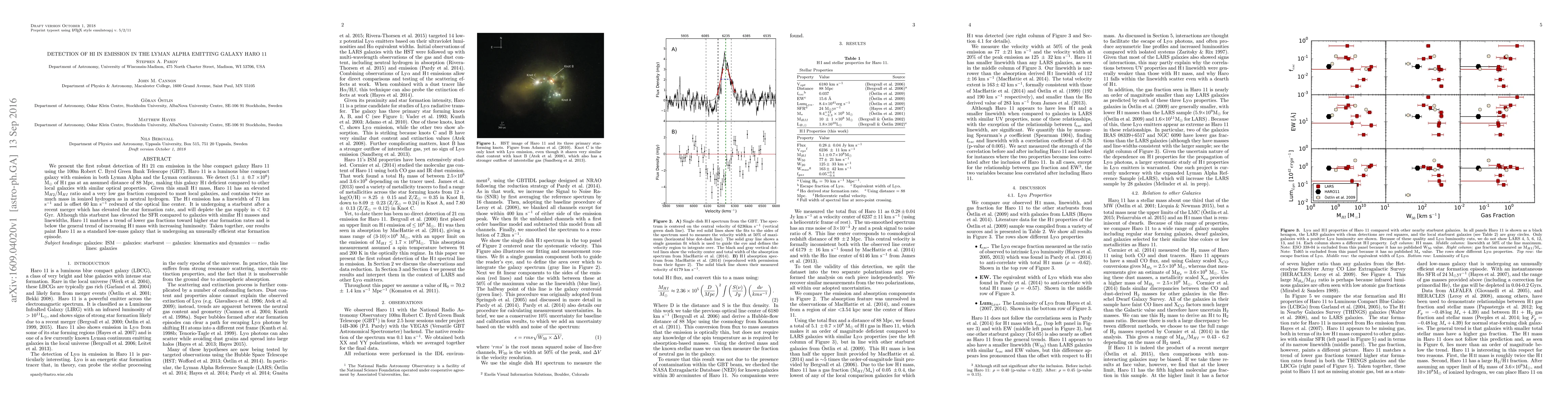 The paper presents the first robust detection of HI 21 cm emission in Haro 11, providing detailed analysis of its gas properties and star formation rate.