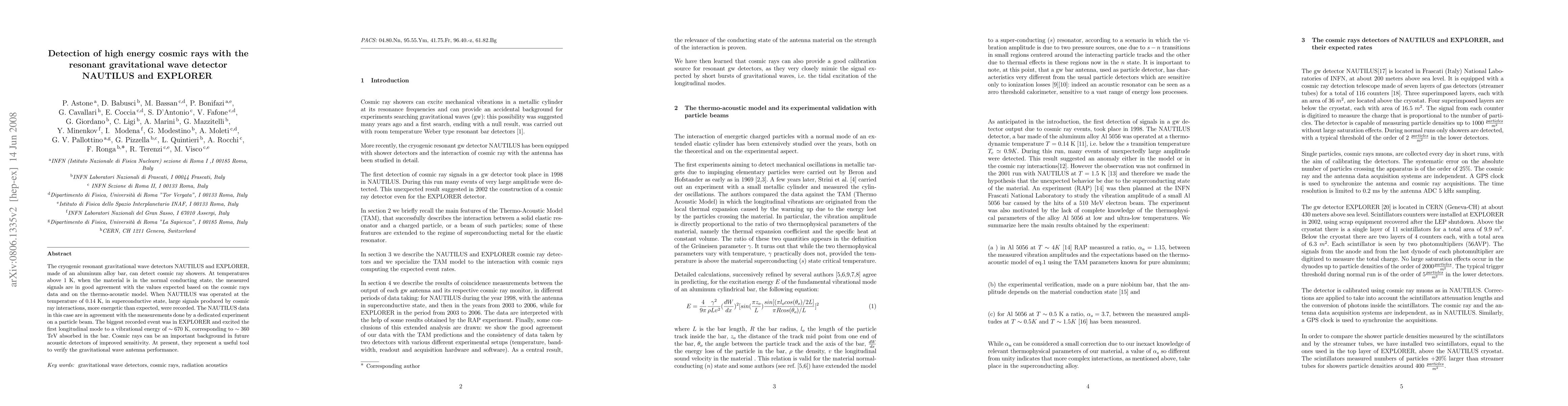 This paper investigates the ability of the NAUTILUS and EXPLORER cryogenic resonant gravitational wave detectors to detect high energy cosmic rays, finding that the detectors can register significant signals from cosmic ray showers, especially when in superconductive state, with the largest recorded event absorbing about 360 TeV. The study highlights the potential for cosmic rays to be a background noise in future sensitive gravitational wave detectors.