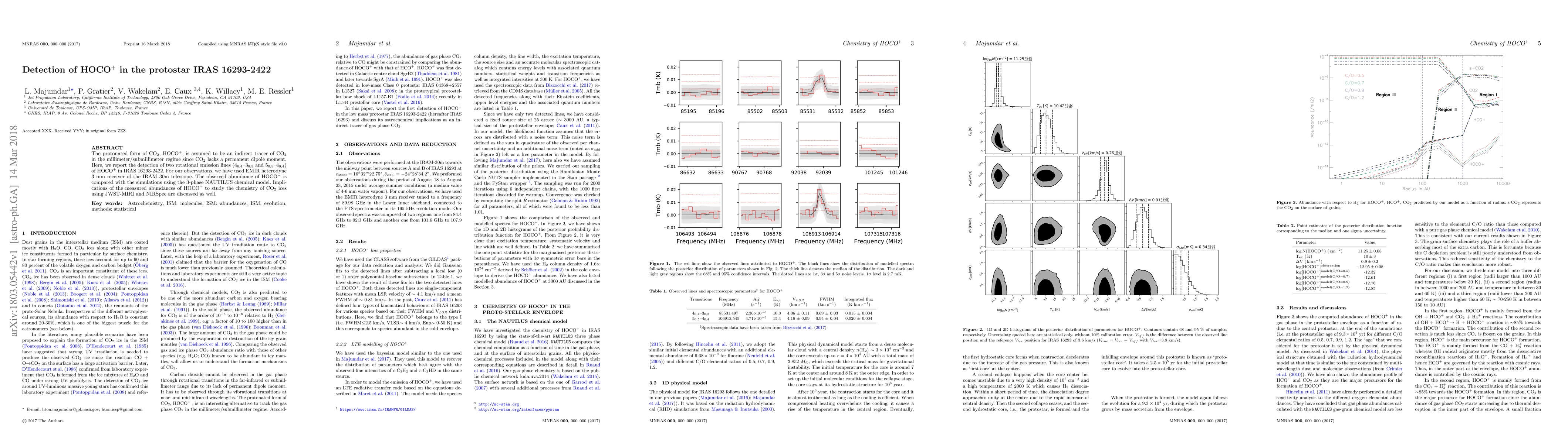 This paper reports the detection of HOCO+ rotational emission lines in the protostar IRAS 16293-2422 using the IRAM 30m telescope, providing insights into the chemistry of CO2 ices. The study compares the observed abundances of HOCO+ with simulations and discusses future observations using JWST-MIRI and NIRSpec.