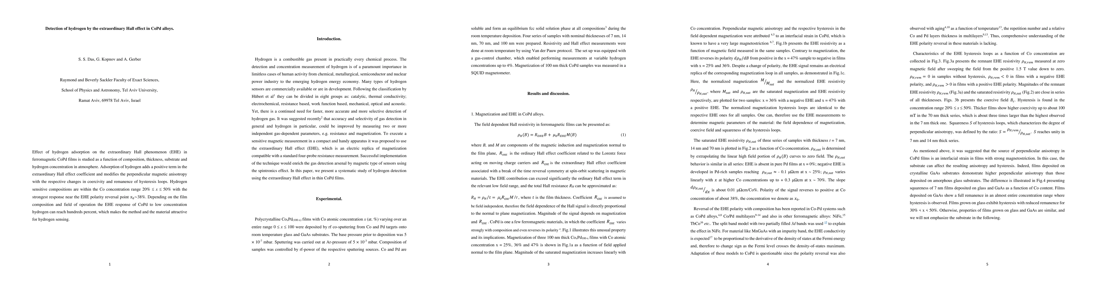 Researchers discovered that hydrogen adsorption enhances the extraordinary Hall effect in CoPd alloys, making them suitable for hydrogen sensing applications with high sensitivity to low concentrations of hydrogen.
