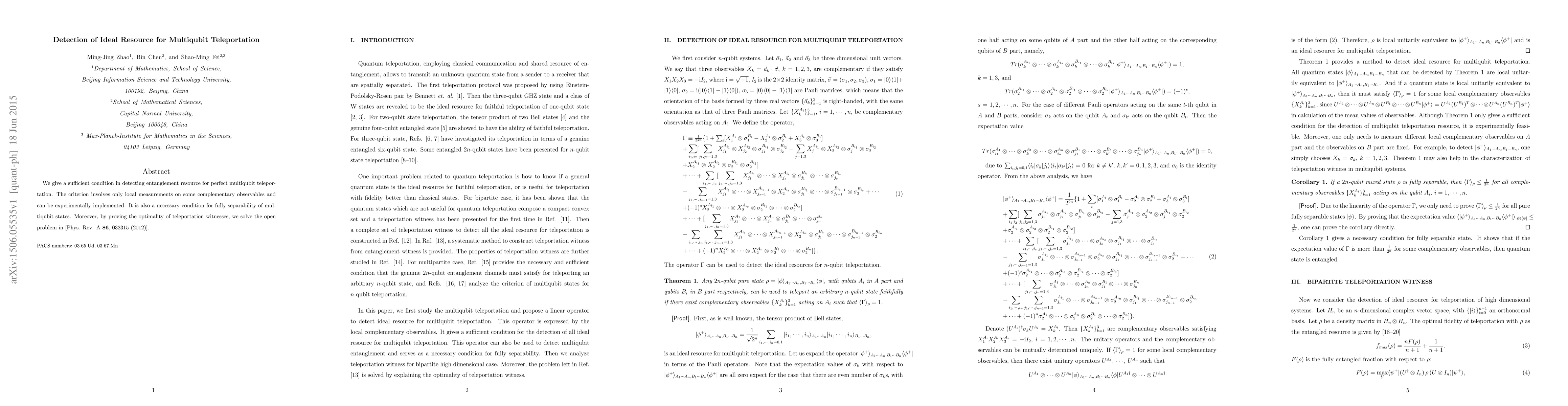 This paper presents a sufficient and necessary condition for perfect multiqubit teleportation using local measurements, solving an open problem regarding the optimality of teleportation witnesses. The proposed method is experimentally feasible and ensures the full separability of multiqubit states.