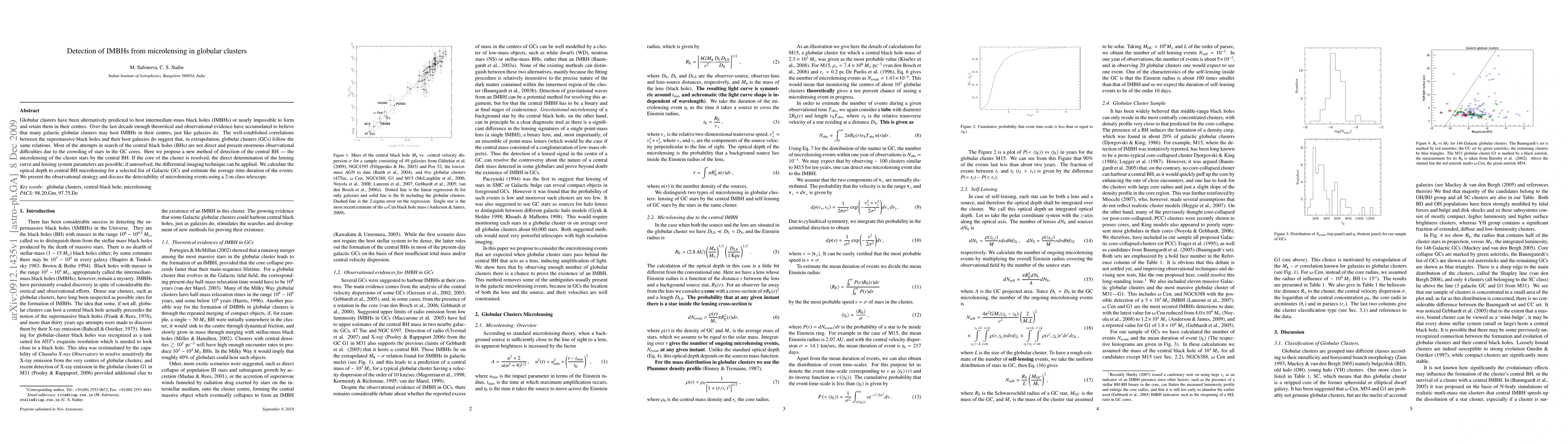 This paper proposes a new method for detecting intermediate-mass black holes (IMBHs) in globular clusters using microlensing of cluster stars, estimating the optical depth and event durations, and discussing the feasibility of observing these events with a 2-m class telescope. The study suggests that microlensing could provide a viable alternative to direct detection in crowded cluster cores.