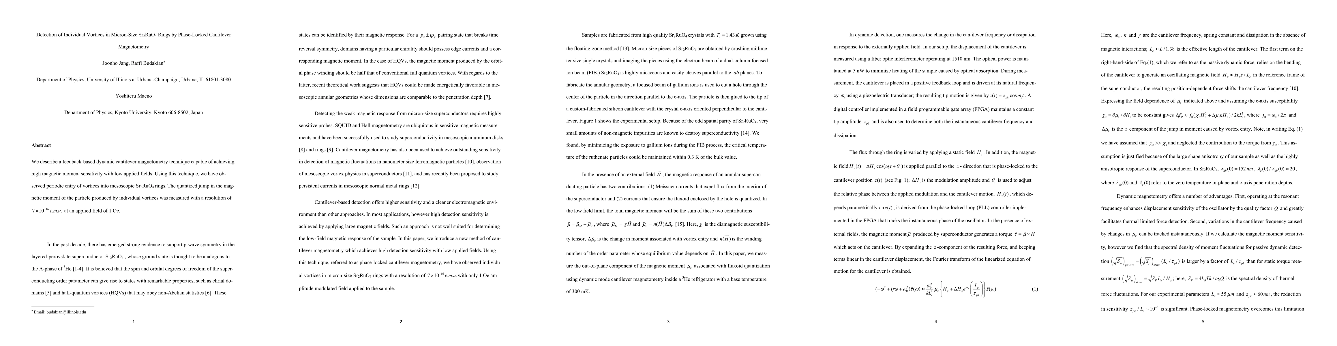 Researchers developed a technique to detect individual vortices in micron-size Sr2RuO4 rings using phase-locked cantilever magnetometry, achieving high sensitivity with low applied fields.