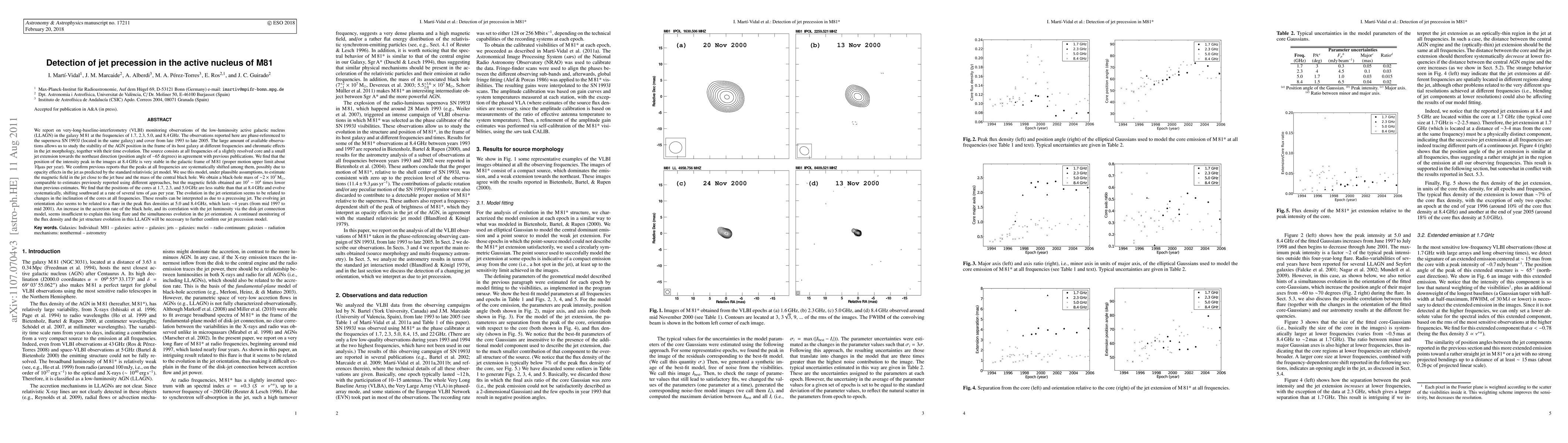 This study reports on VLBI monitoring of the low-luminosity AGN in M81, revealing a stable jet peak at 8.4GHz and a systematic southward shift of the core positions at lower frequencies, suggesting jet precession linked to changes in core inclination and a ~4-year flux density flare.