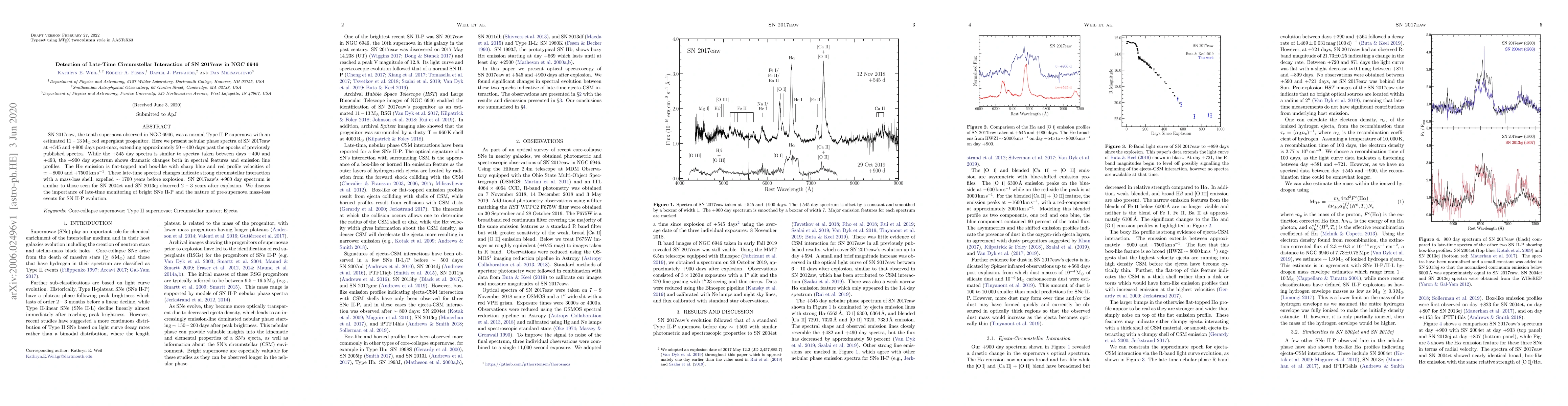 SN 2017eaw, the tenth supernova observed in NGC 6946, was a normal Type II-P supernova with an estimated 11 - 13 Msun supergiant progenitor. Here we present nebular phase spectra of SN 2017eaw at +545 and +900 days post-max, extending approximately 50 - 400 days past the epochs of previously published spectra. While the +545 day spectra is similar to spectra taken between days +400 and +493, the +900 day spectrum shows dramatic changes both in spectral features and emission line profiles. The Halpha emission is flat-topped and box-like with sharp blue and red profile velocities of ~ -8000 and +7500 km/s. These late-time spectral changes indicate strong circumstellar interaction with a mass-loss shell, expelled ~ 1700 years before explosion. SN 2017eaw's +900 day spectrum is similar to those seen for SN 2004et and SN 2013ej observed 2 - 3 years after explosion. We discuss the importance of late-time monitoring of bright SNe II-P and the nature of pre-supernova mass-loss events for SN II-P evolution.