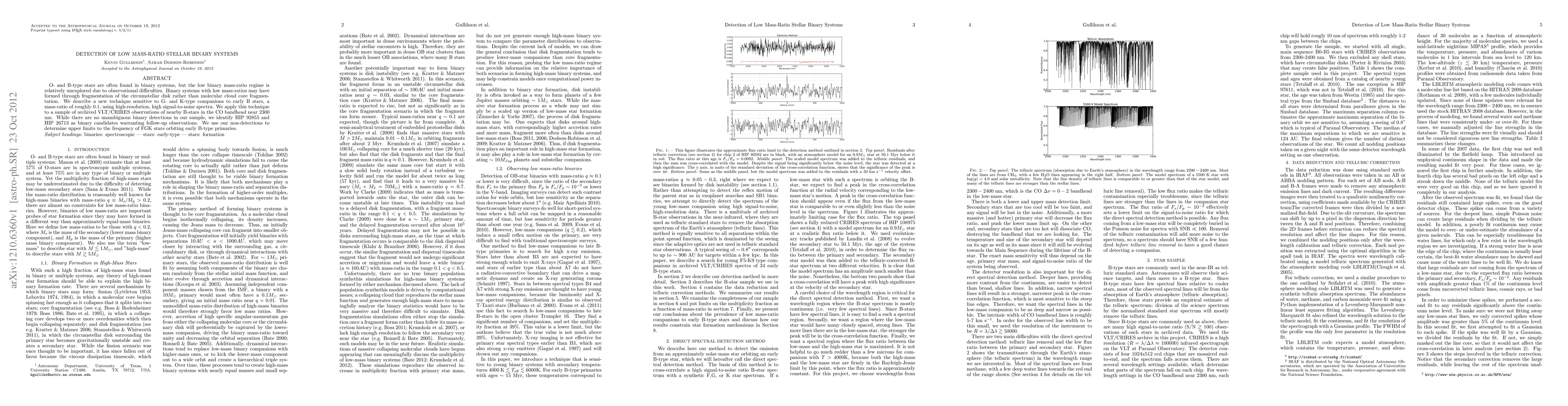 O- and B-type stars are often found in binary systems, but the low binary mass-ratio regime is relatively unexplored due to observational difficulties. Binary systems with low mass-ratios may have formed through fragmentation of the circumstellar disk rather than molecular cloud core fragmen- tation. We describe a new technique sensitive to G- and K-type companions to early B stars, a mass-ratio of roughly 0.1, using high-resolution, high signal-to-noise spectra. We apply this technique to a sample of archived VLT/CRIRES observations of nearby B-stars in the CO bandhead near 2300 nm. While there are no unambiguous binary detections in our sample, we identify HIP 92855 and HIP 26713 as binary candidates warranting follow-up observations. We use our non-detections to determine upper limits to the frequency of FGK stars orbiting early B-type primaries.