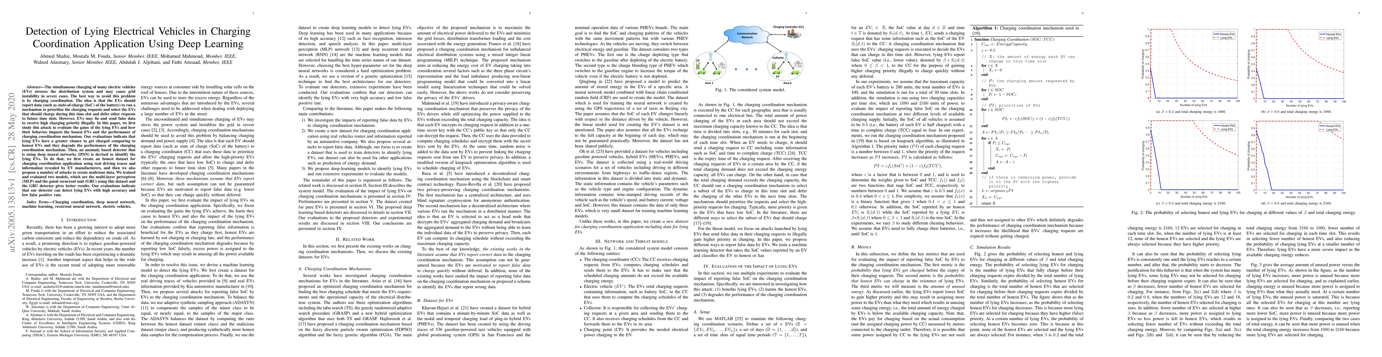 This paper investigates the problem of electric vehicles (EVs) lying about their state-of-charge to gain higher charging priority, which degrades charging coordination performance. It proposes a deep learning-based detector using GRU networks to identify dishonest EVs, achieving high detection accuracy and low false positive rates.
