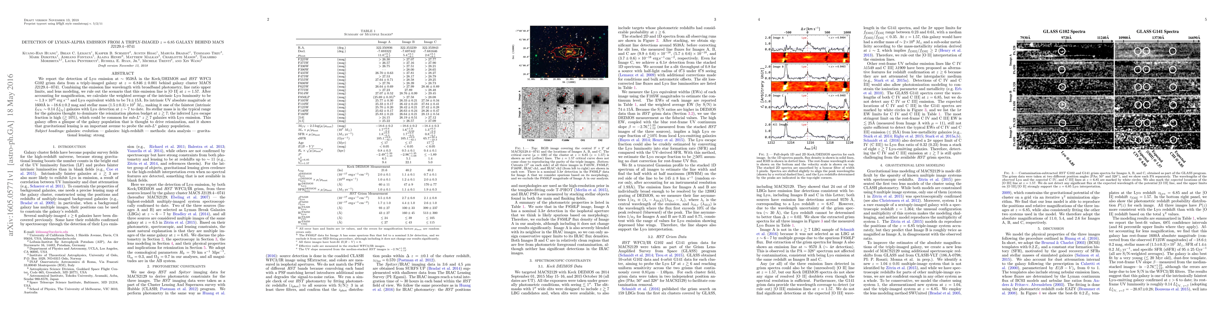 This paper reports the detection of Lyman-Alpha (Ly$\alpha$) emission from a triply-imaged galaxy at $z=6.846$ in the MACS J2129.4-0741 cluster, revealing its intrinsic luminosity and properties. The galaxy's high Ly$\alpha$ escape fraction suggests it may contribute significantly to reionization, highlighting the importance of gravitational lensing to study faint galaxies.
