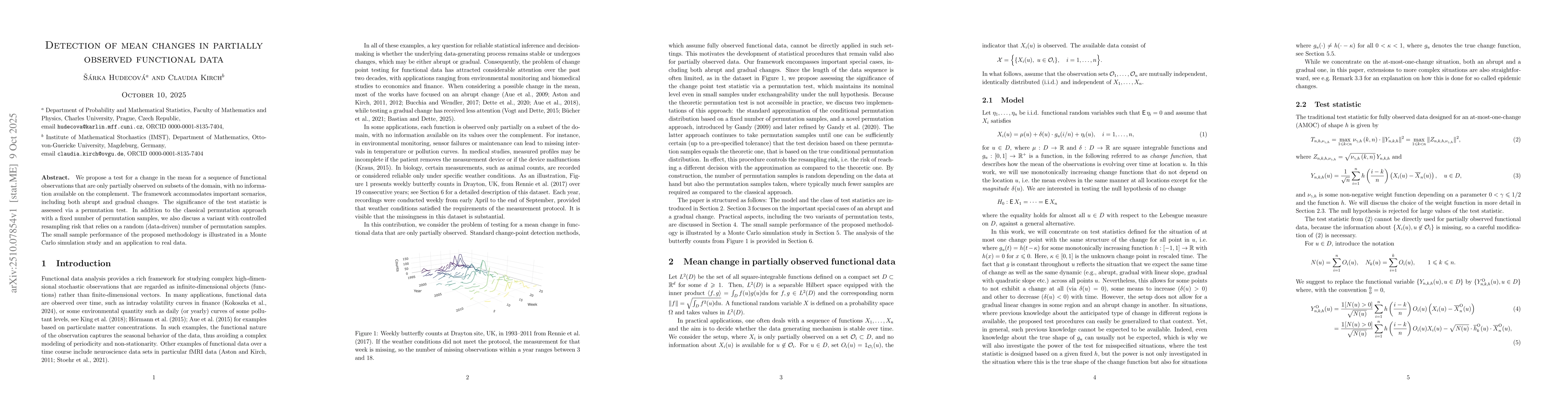 This research provides robust statistical tools for analyzing incomplete functional data, with applications in environmental monitoring and other fields where data may be partially observed. The findings enhance our ability to detect meaningful changes in complex datasets.