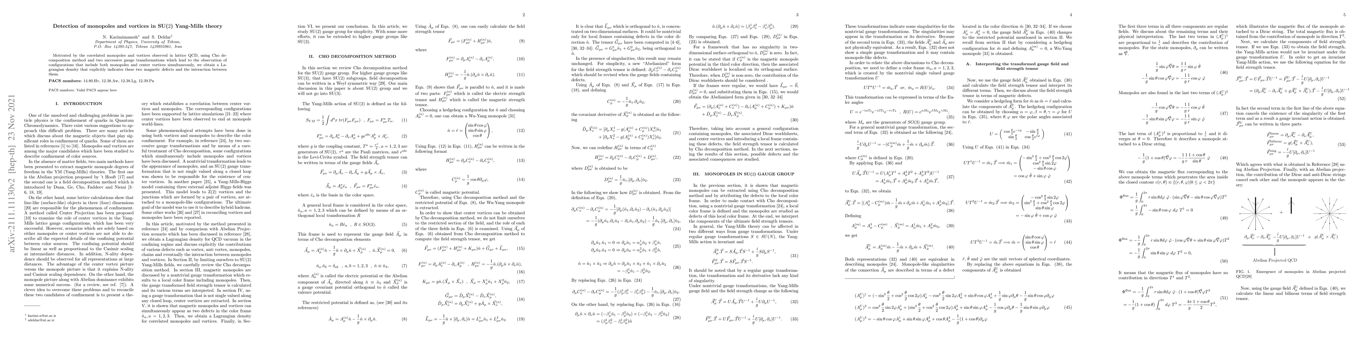 The paper explores lattice QCD to detect monopoles and vortices in SU(2) Yang-Mills theory using the Cho decomposition method, revealing a Lagrangian density that identifies interactions between these magnetic defects. This dual detection highlights correlated behaviors observed in QCD configurations.